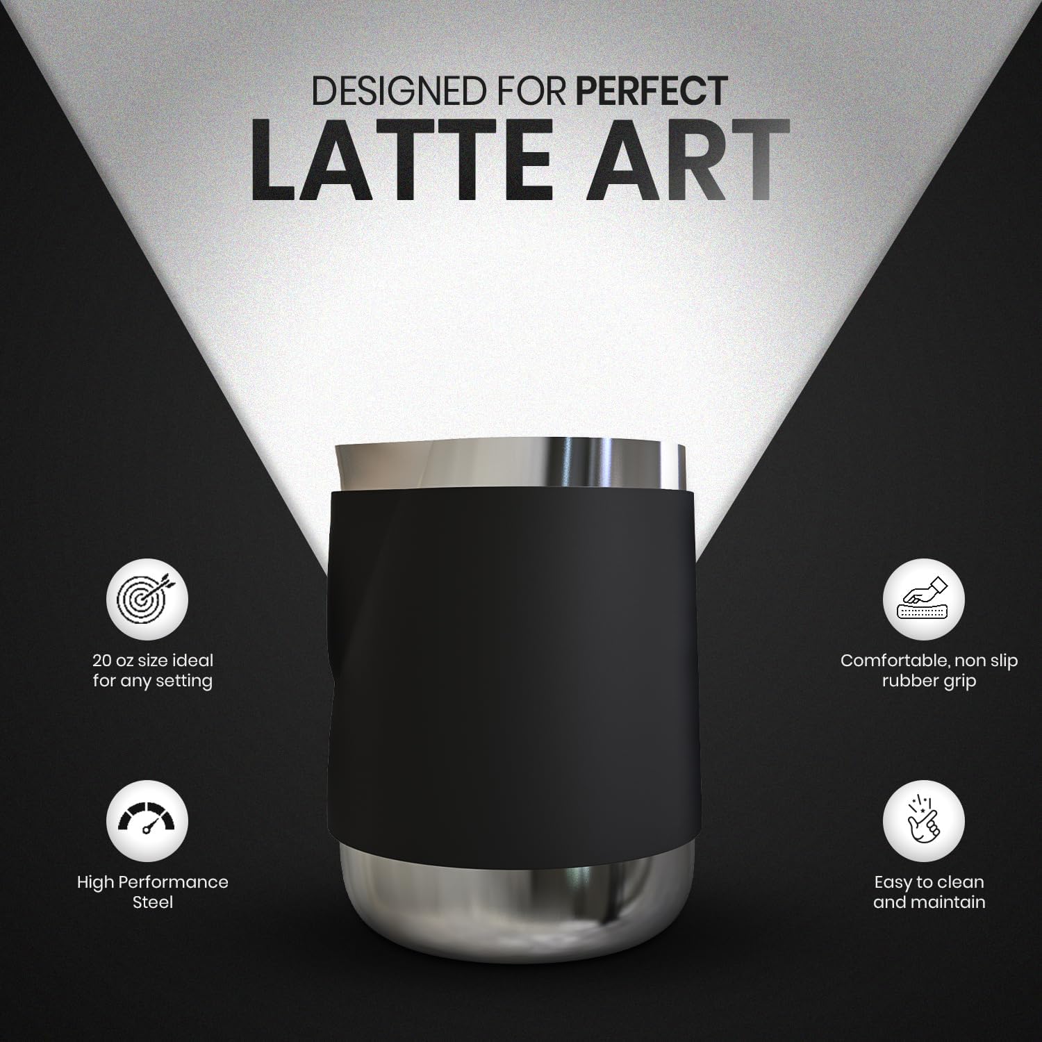 - ๐๐๐๐๐๐๐๐๐ ๐๐๐๐ ๐๐๐๐๐ ๐๐๐๐๐๐๐๐: With a 20-oz capacity, this pitcher is large enough for multiple drinks yet compact for personal use. Itโs the ideal size for crafting lattes, cappuccinos, and flat whites at home, in cafes, or in restaurants with high beverage demand.