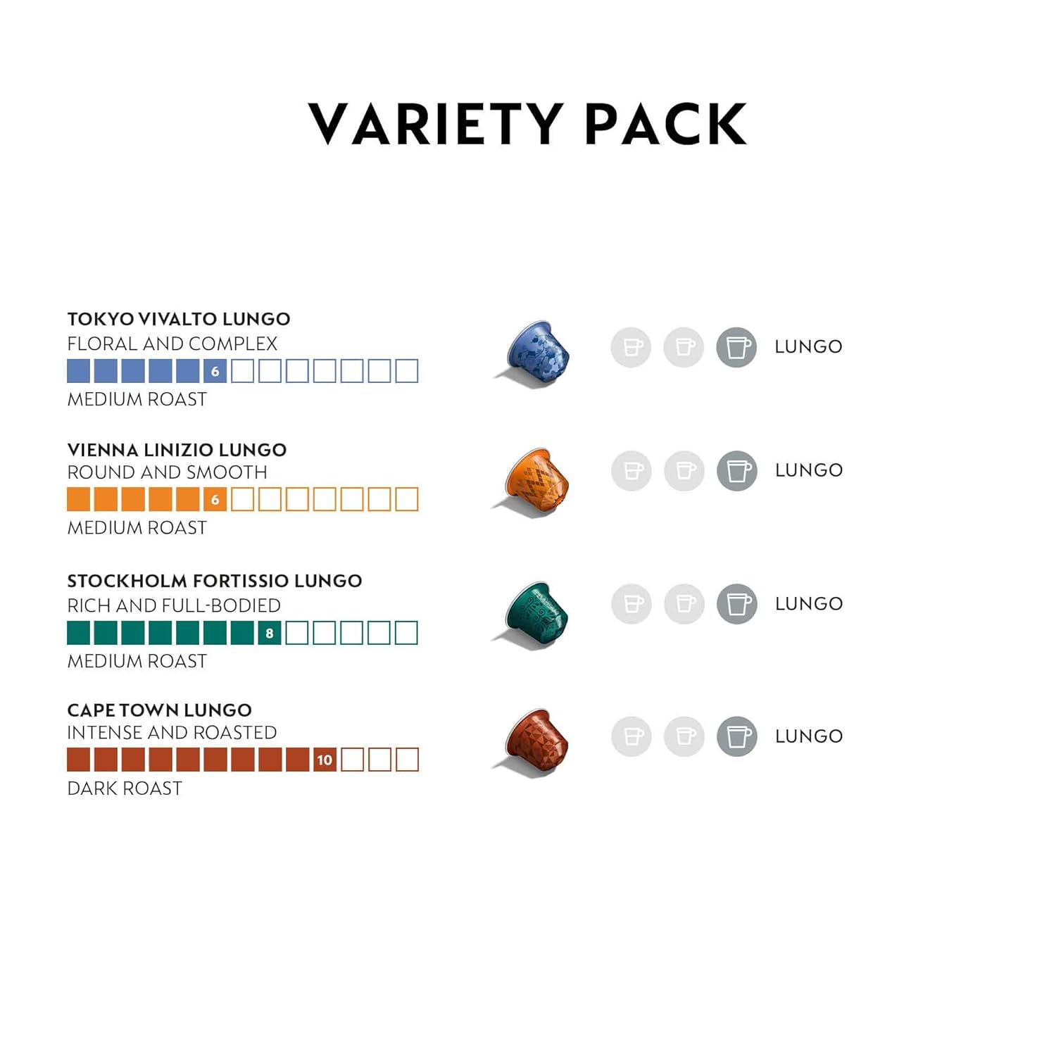 - Flavor : Morning Lungo Blends Variety Pack