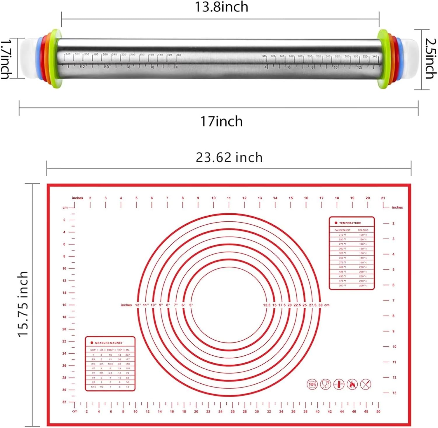 - Baking Comprehensive Matching SET: The measuring pastry mat is adopted, and the size of the baking mat is about 23.6 inches ร15.7 inches, which is very suitable. No matter how big the dough is, you are able to roll the dough easily. It is very easy to clean