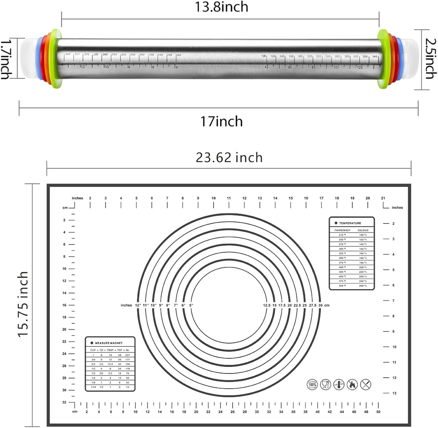 - Baking Comprehensive Matching SET: The measuring pastry mat is adopted, and the size of the baking mat is about 23.6 inches ร15.7 inches, which is very suitable. No matter how big the dough is, you are able to roll the dough easily. It is very easy to clean.