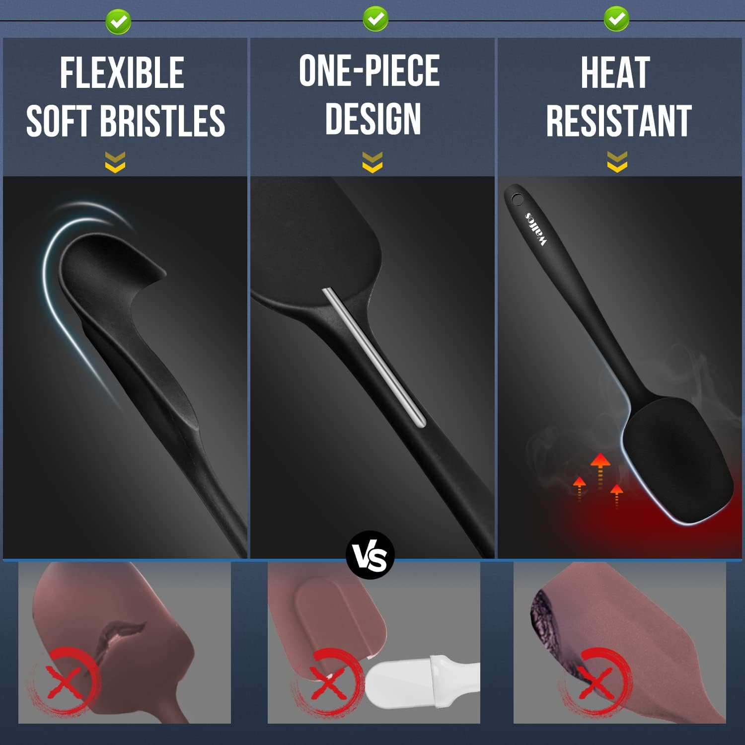 - 【600°F Highly Heat Resistant,BPA Free!】WALFOs spatulas are made of premium food grade silicone,BPA Free, 600°F Heat Resistant,Non-stick surface,Whether cooking,Bake Royal,scraping, decorating or mixing use walfos spatula,which are are safe,good for your health and easy on all of your cookware.