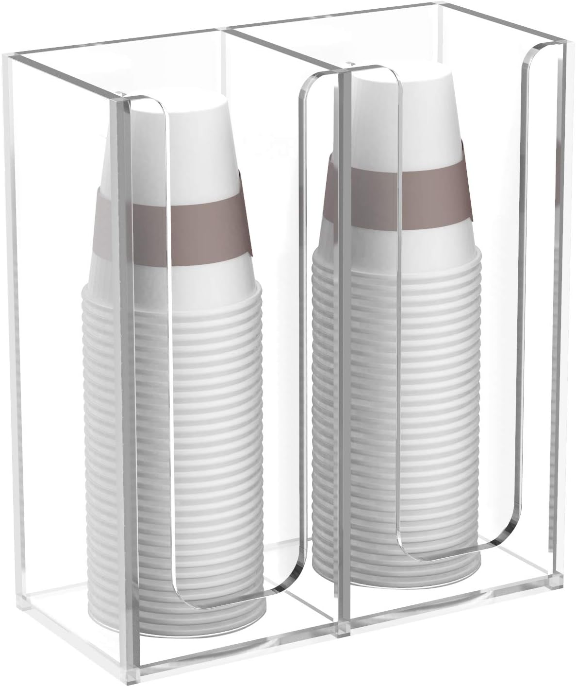 - Large Capacity - the cup holder outer dimensions are 8.26Lx4.13Wx8.0H inches , each section is 3.9Lx3.8W inches and 8.0 inches tall, stacking 20 cups per section, it holds coffee cup from 12oz to 16oz.