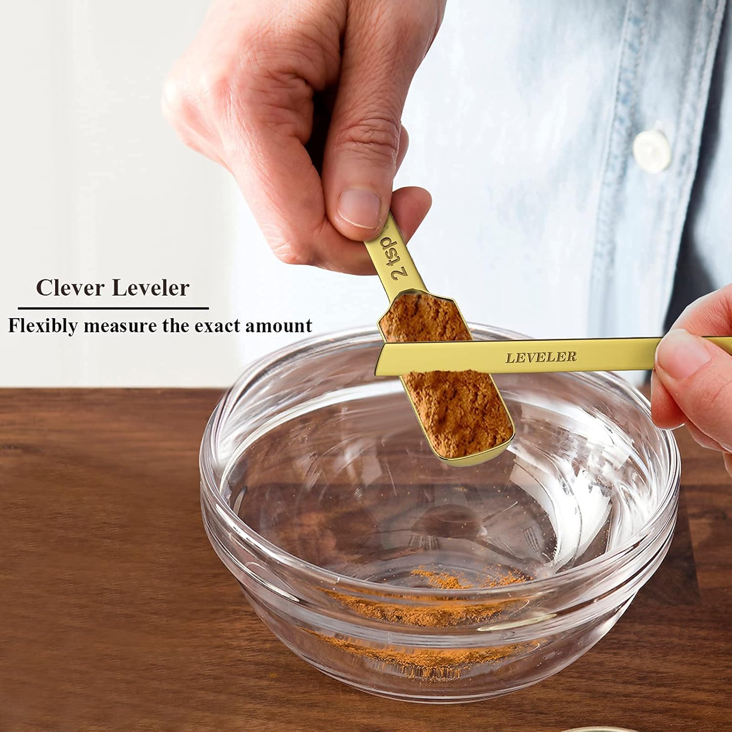 - CONVENIENT TO USE: The rectangular design of the measuring spoons is slim and narrow to fit into small spice jars or herb containers, ideal for measuring any amounts. You don't need to shake spices onto the spoon so you will save more and waste less of your spices and also make your kitchen clean and no more clutter