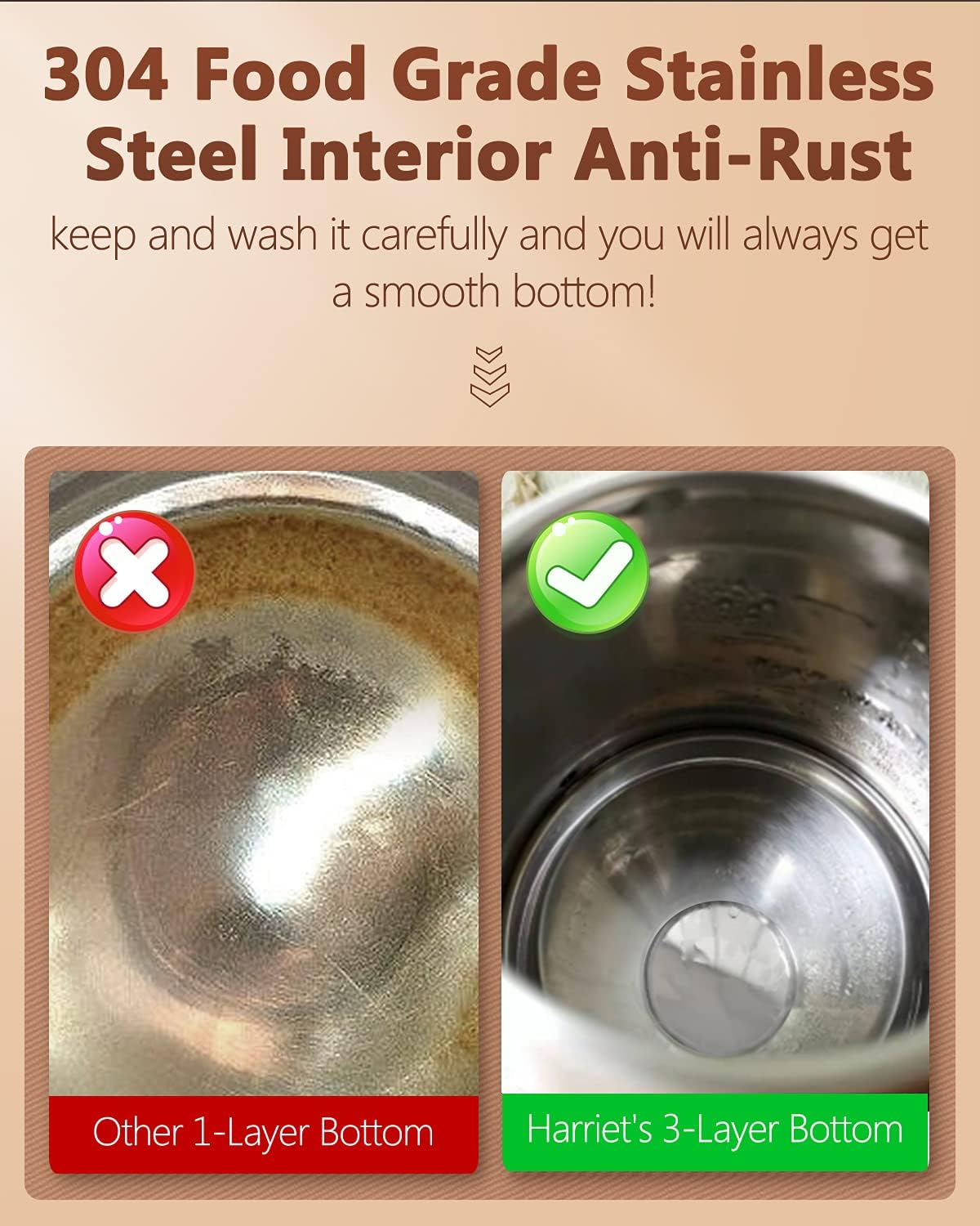- Three layer base enhances heat retention and durability: Professional grade 18/8 stainless steel construction with triple layer base prevents rust and leaks; Uniform heat circulation ensures rapid boiling on gas, induction or electric stoves; Medium heat setting below 1400W recommended for induction compatibility