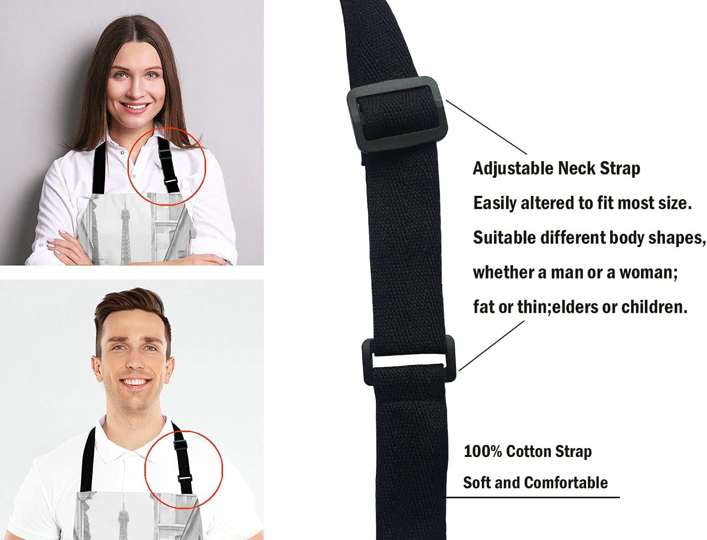 - Adjustable neck strap with black ties,The adjustable Neck strap design, It can be adjusted quickly for people of different heights, making it easier to wear.