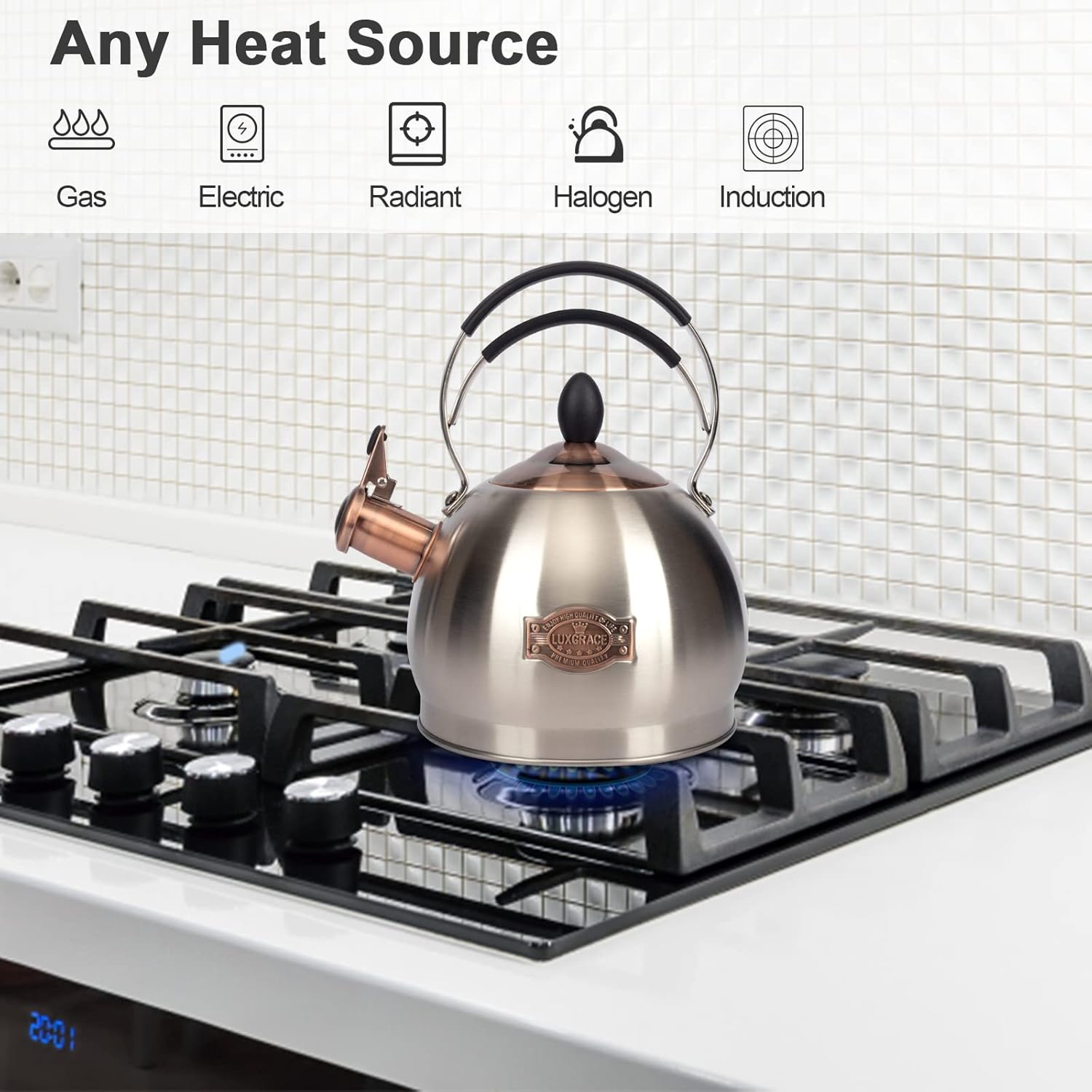 - 【Perfect Whistling Sound】The tea kettle will release a loud whistle when the water has reached a boiling point. When you focus on your housework, movies, music, or anything else, the teapot will whistle to remind you when the water is boiling and you won't miss it. (Tip: Just fill up 80% of the capacity on tea kettle so that the water kettle can whistle when water is boiling.)