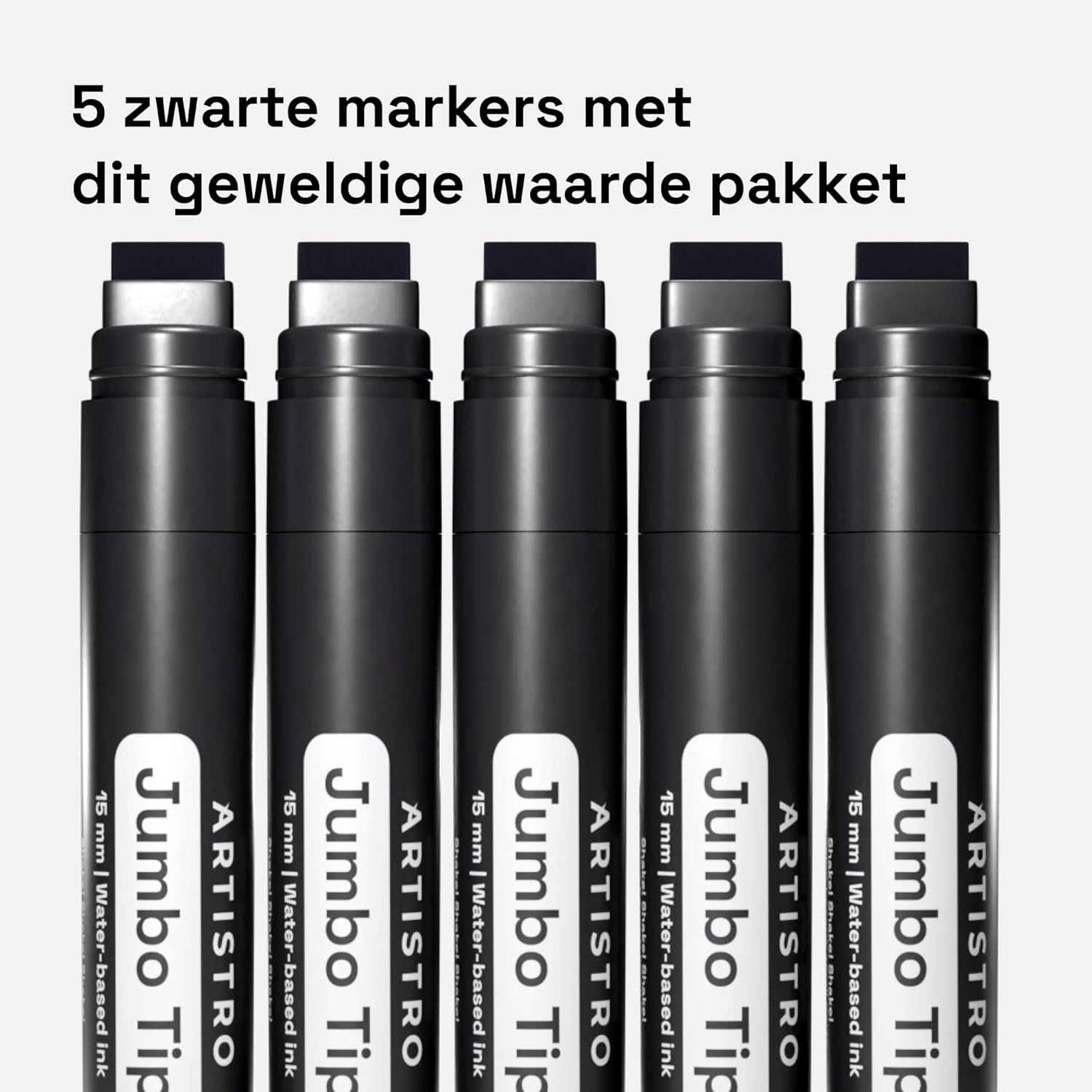 ARTISTRO 5 Black Acrylic Paint Pens, Acrylic Paint Markers Jumbo Tip, Fabric Markers for Textile, Canvas, Rock, Glass, Wood, Paper, DYI, Pens for Kids and Adults