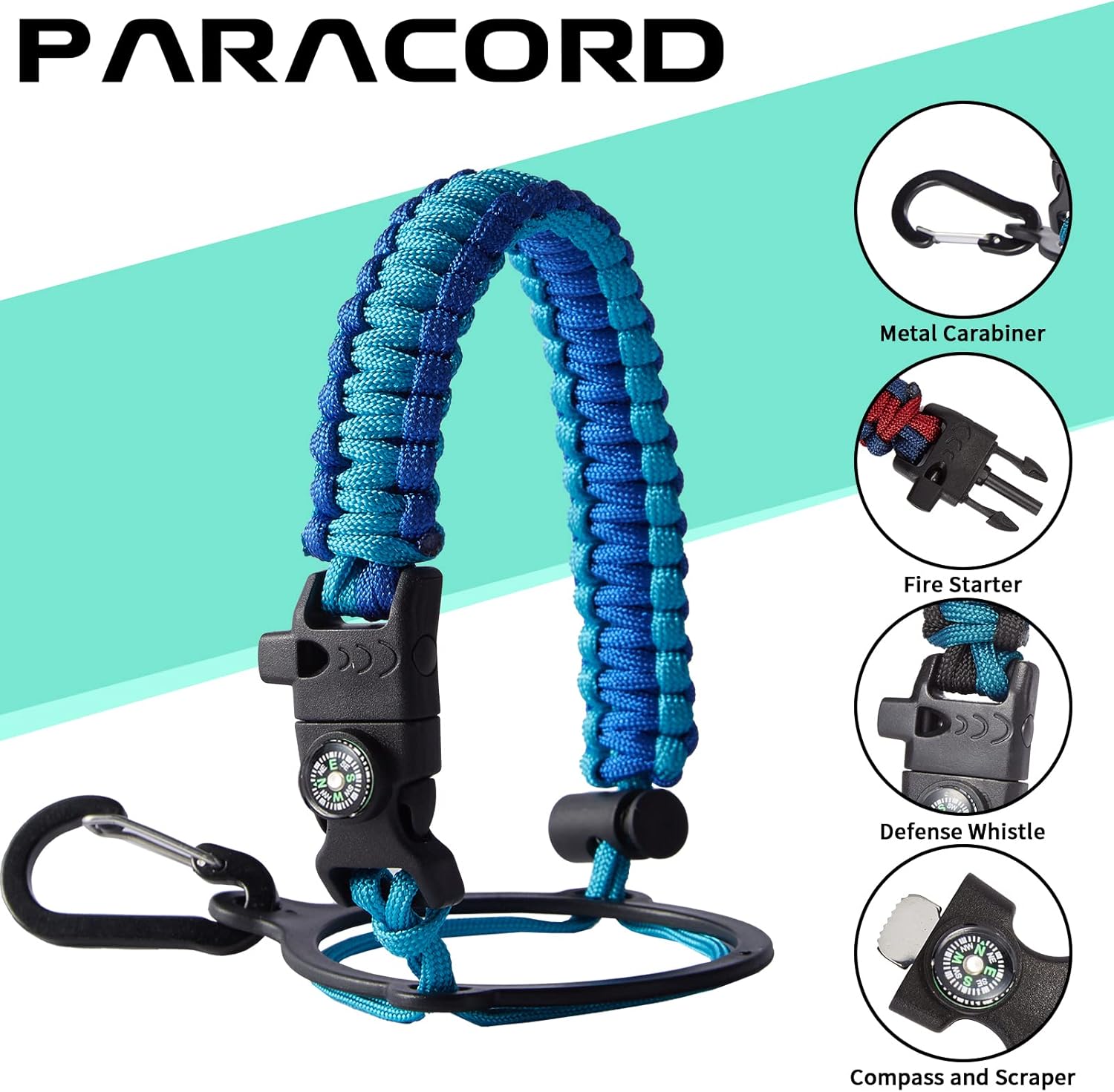 - UNIQUE PARACORD—Perfect Accessories: bright color paracord matches the flask water bottle to give you a youthful vibe while adding a personal style. It comes with a compass, safety loop, metal carabiner, flint, igniter, and whistle to become your survival tool for your wild adventures