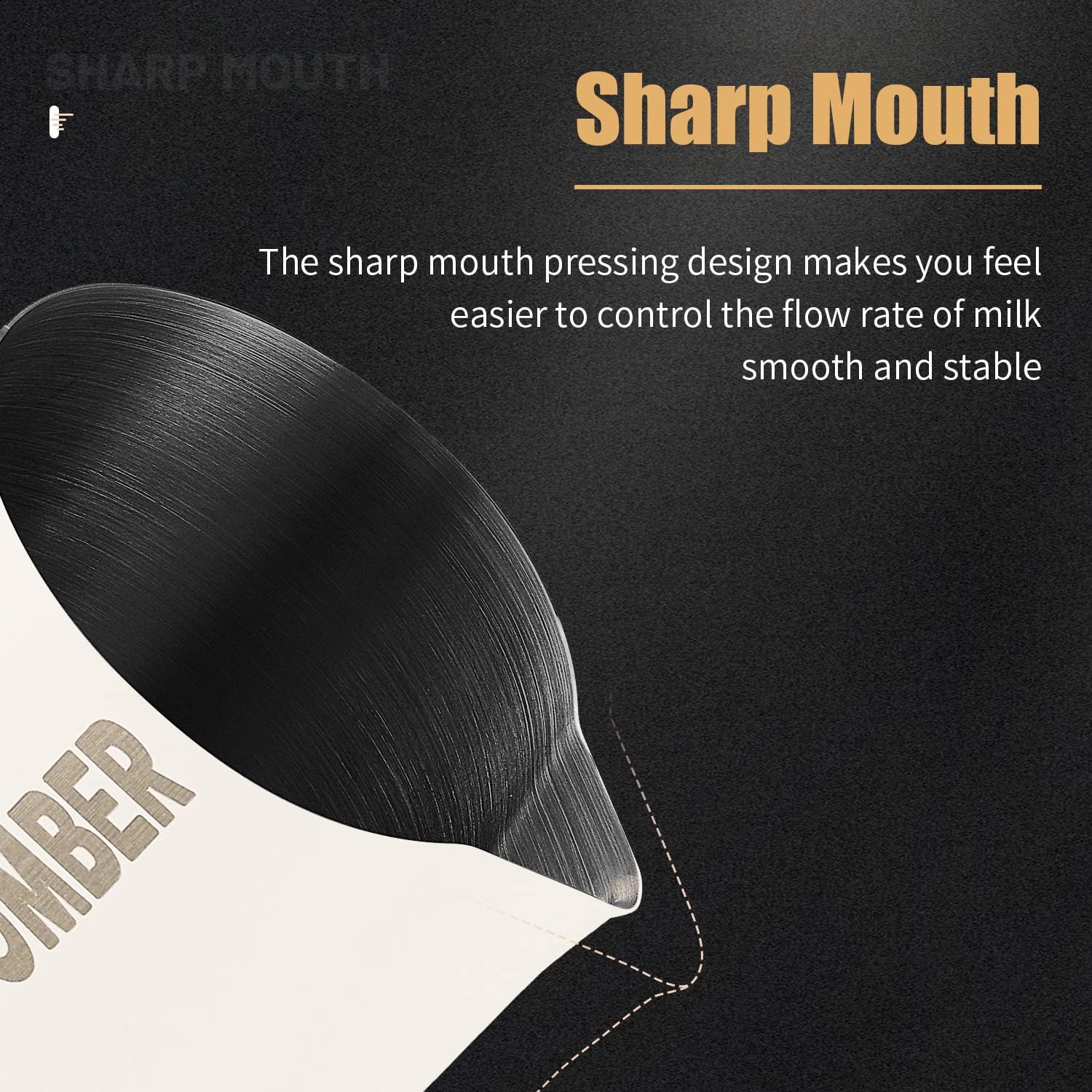 - Double Arc-shaped Guide Grooves: This milk frothing pitcher is equipped with innovative front and rear dual guide grooves design, enhance milk gathering, ensuring a smoother and more stable pour for perfect latte art.