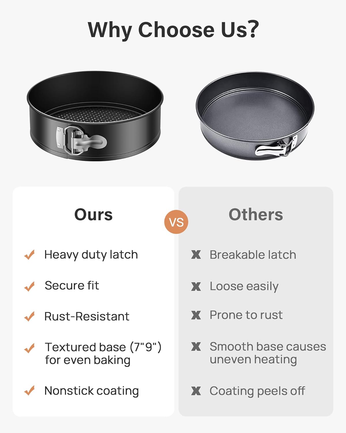 - Non-Stick Springform Pans for Easy Cake Release: Featuring durable, double-layer non-stick coatings, this springform cheesecake pan set ensures effortless release from your 9-inch springform pan and other cheesecake pans. Perfect for delicate desserts like cheesecakes, flourless cakes, and more, the spring form pan's detachable base guarantees smooth and secure cake removal quick and mess-free