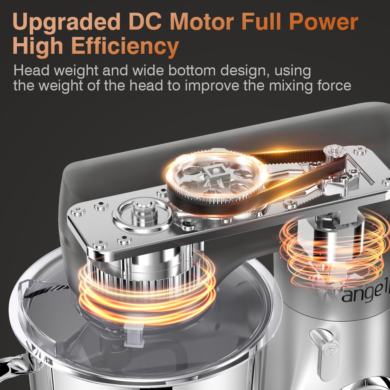 - 【Upgrated DC Motor System 】Mini Angel stand mixers adopt all metal gear structure, with closed gearbox, effectively reduce the sound, speed running stable without stalling with can long service life. And the planetary mixing system which functions more touch points per rotation during mixing process, so that all the mix is stirred at a full extent.