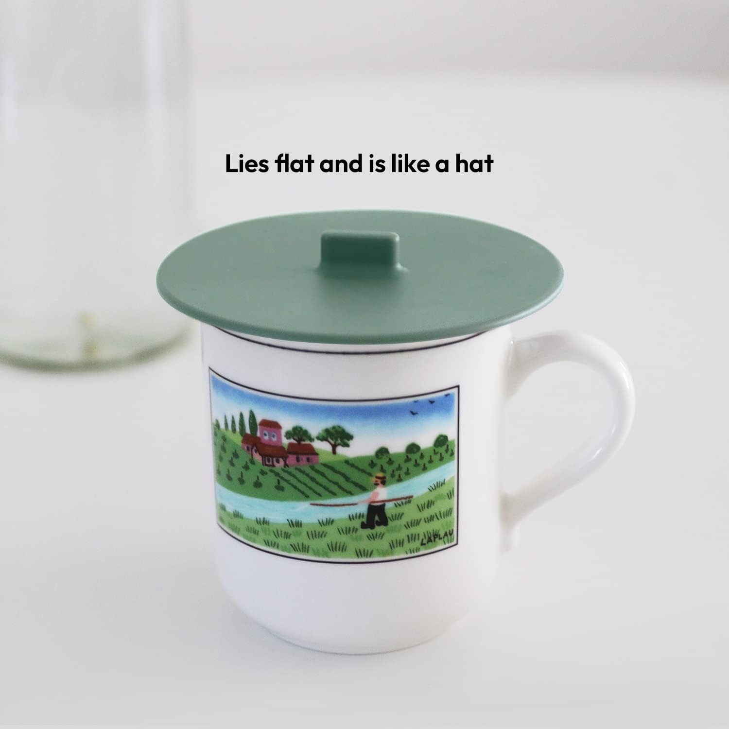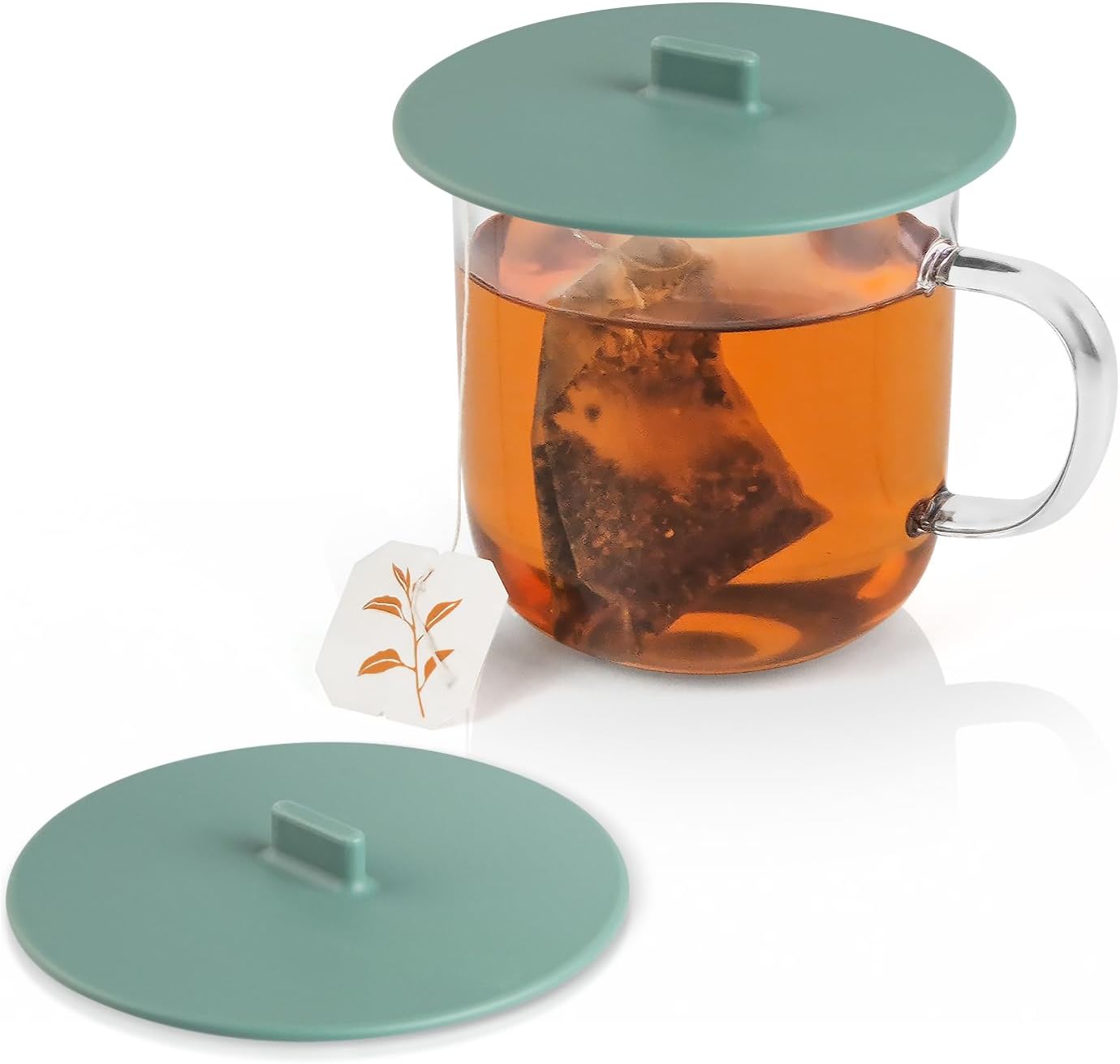 Carrotez Silicone Cup Covers for Drinks, 3.9 Inch Reusable Silicone Mug and Cup Lids for Steeping Coffee and Tea, Set of 2 - Soy Green