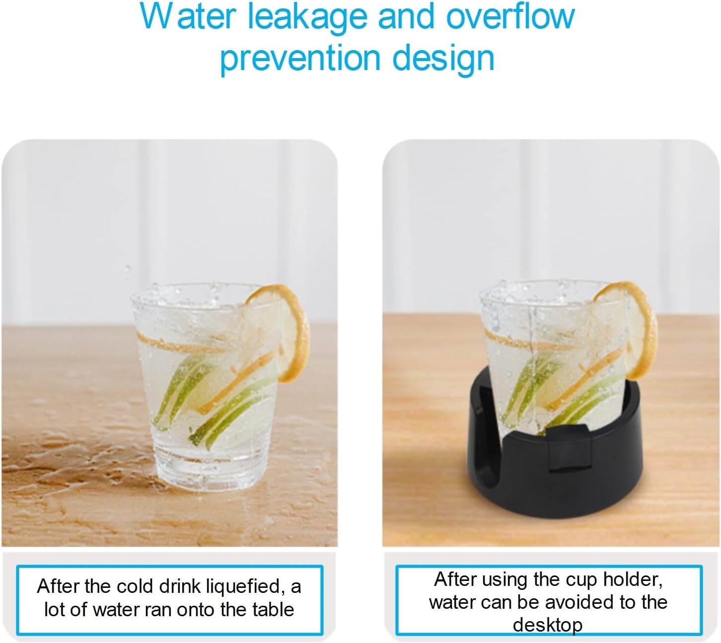 - Elaborate design:The holder has a 5mm waterproof position inside to prevent the cold drink cup from leaking and keep the table clean. Cup handle slot design, easy access to cup with handle, convenient for you to enjoy drinks