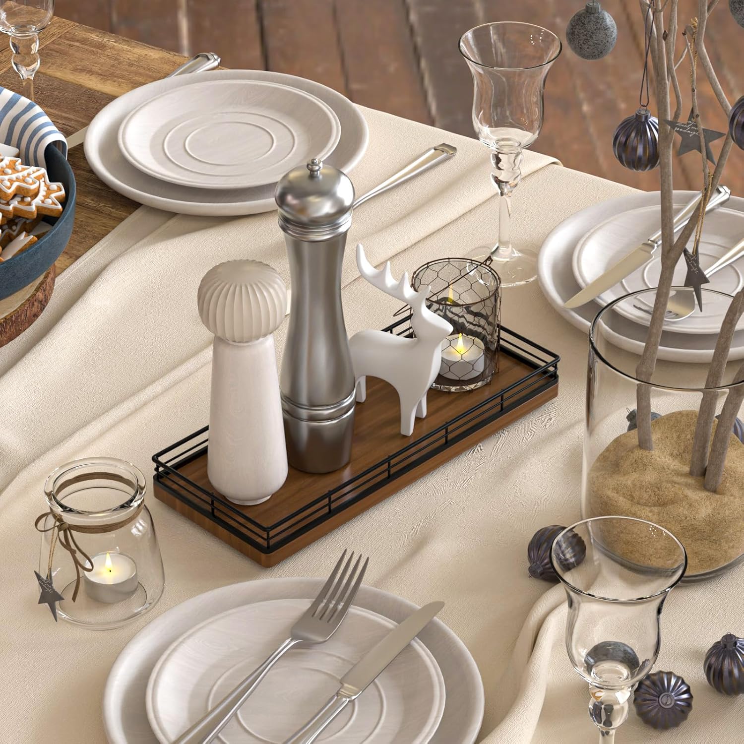 - Adaptability: This wooden tray easily switches between roles โ from a stylish vanity tray for your bathroom sink to a convenient spice organizer on your kitchen countertop; Its adaptability extends to becoming a decorative table centerpiece in any corner of your home