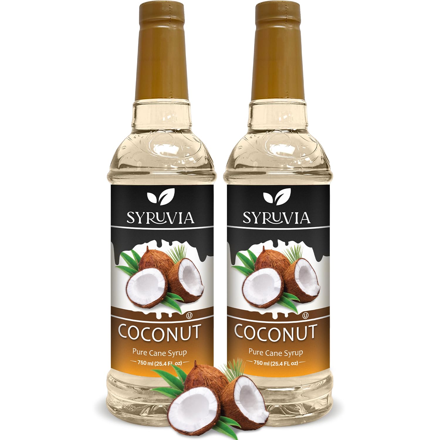 Syruvia Coconut Coffee Syrup – 25.4 fl oz – Syrup for Coffee, Lattes, Shakes, Smoothies, Desserts – 100% Vegan, Gluten Free, Kosher (Pack of 2)