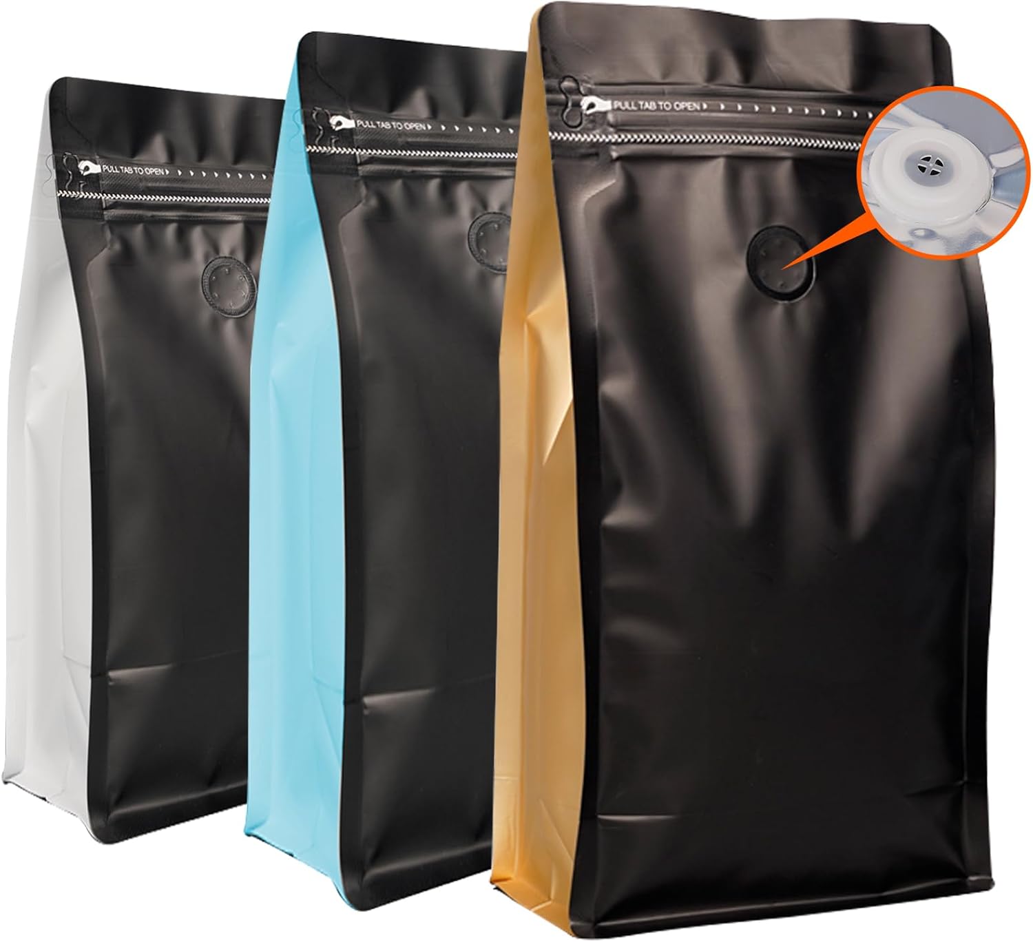 - 【Food Grade Material】Made from Matte MOPP, aluminum foil and food grade PE, three-layer composite material design make it stronger, block light, keeps coffee from odor or moisture,ensure the taste of coffee or powder in the bag, and can also be transported over long distances.
