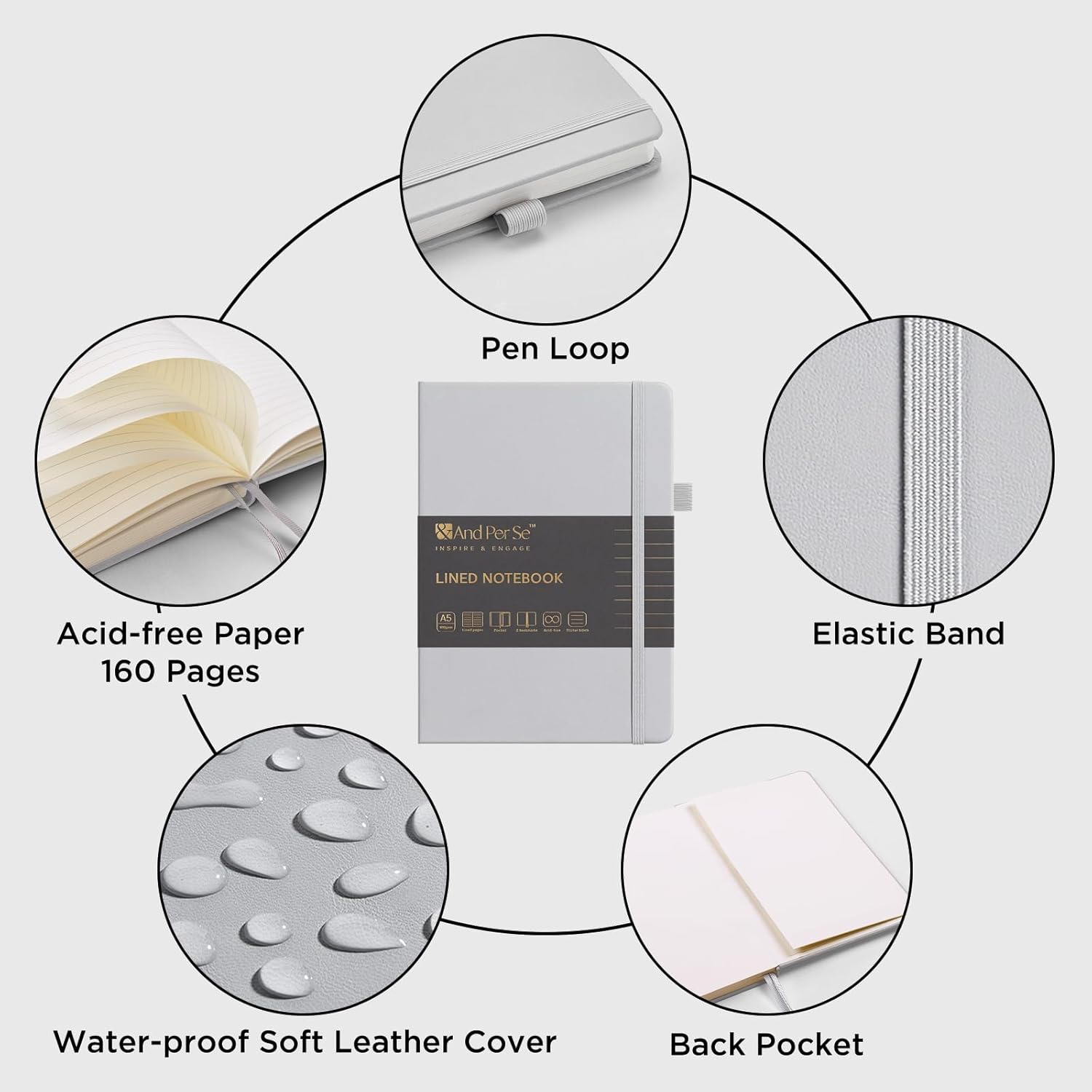 &And Per Se Lined Journal Notebook, 160 Pages, A5 5.7 x 8 inches College Ruled Thick Paper Notebook Journals for Writing, Hardcover Notebooks for Women Men Office School (1 Pack, Grey)
