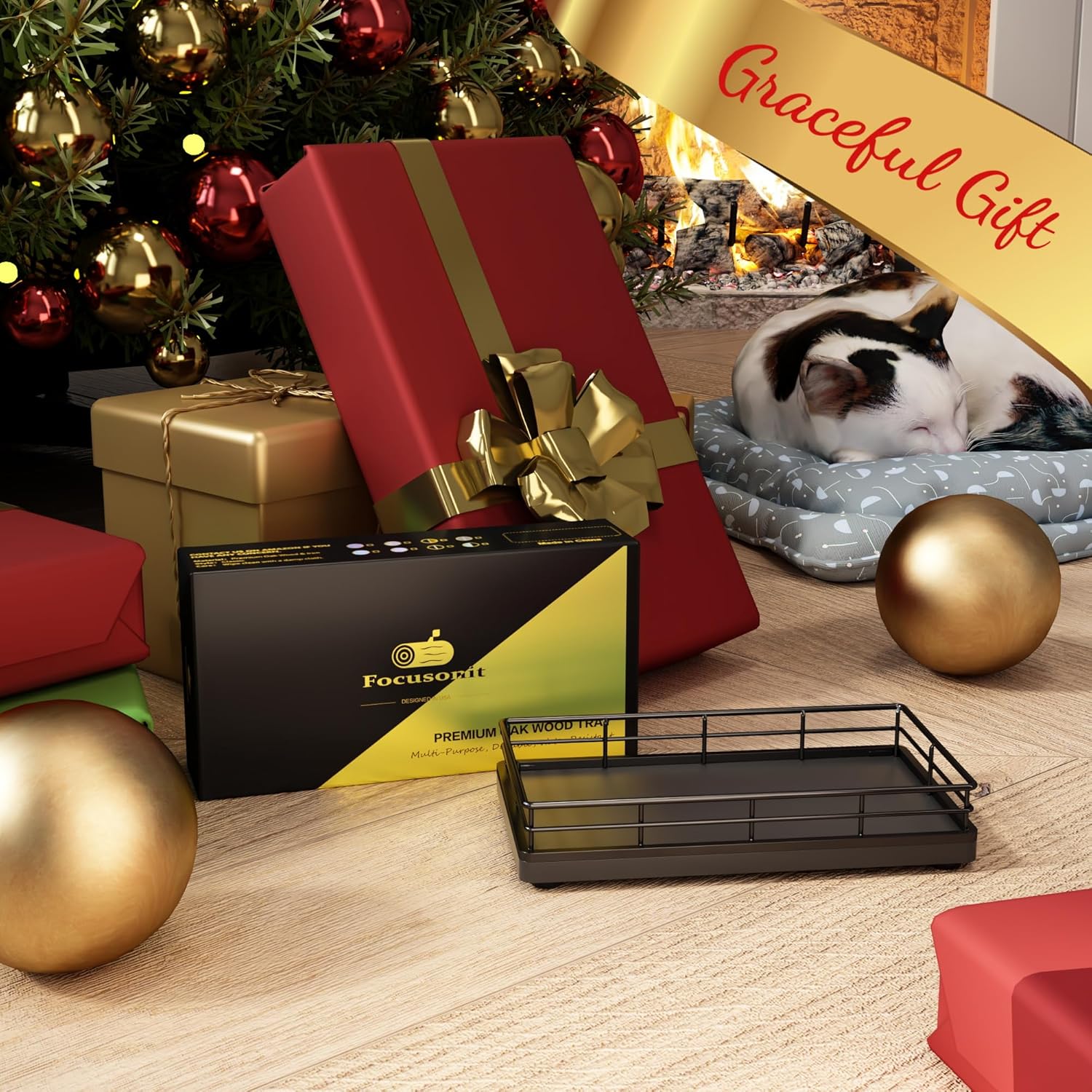 - Unique Charm: Elevate your space with a unique appearance featuring a combination of iron mesh edges and solid oak base; Oak's distinctive and captivating grain pattern adds natural beauty, giving an exquisite touch of elegance and sophistication; This fusion blends modern minimalism with rustic charm seamlessly; This wood rectangle tray is crafted from high-quality oak, which ensures durability and increased load-bearing capacity