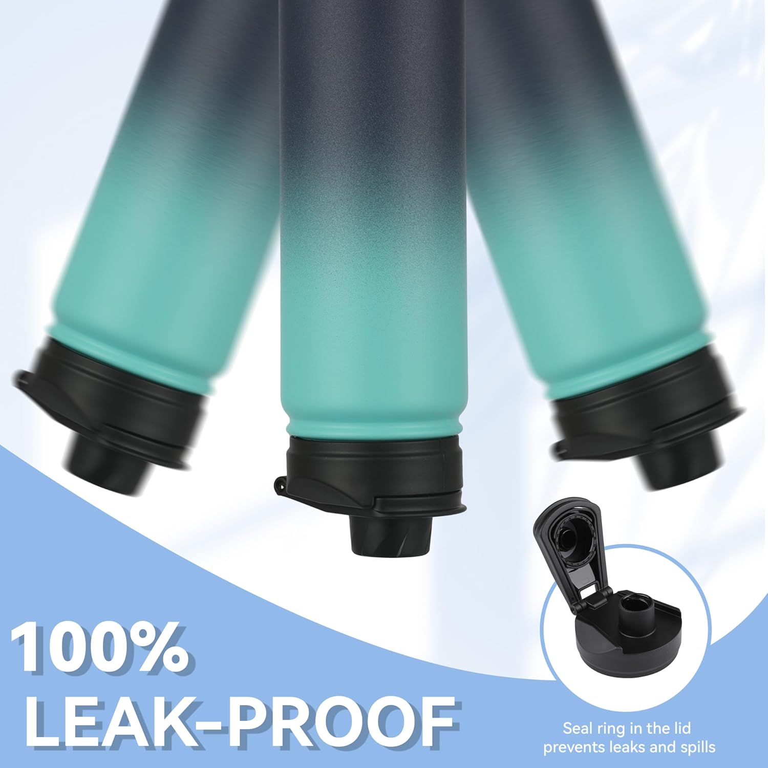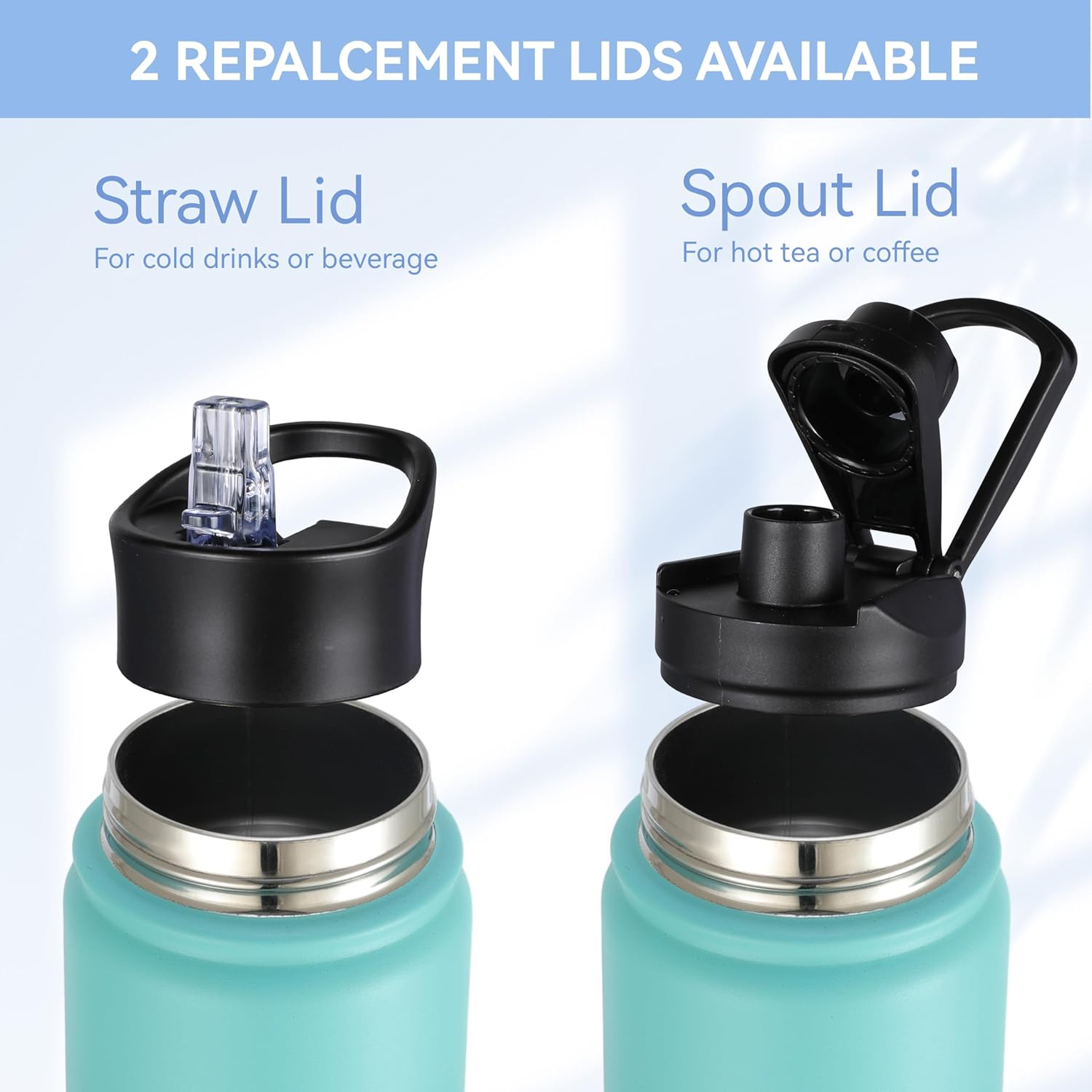 - 【Spout Lid & Straw Lid】 This water bottle comes with 2 lids: an innovative leak-proof spout lid and a newly improved straw lid that has been enhanced for better flow. Easily fill your water bottle with ice and clean it through the wide mouth opening. Both allow easy one-handed or hands free sipping, they are designed for you to drink anytime, anywhere.
