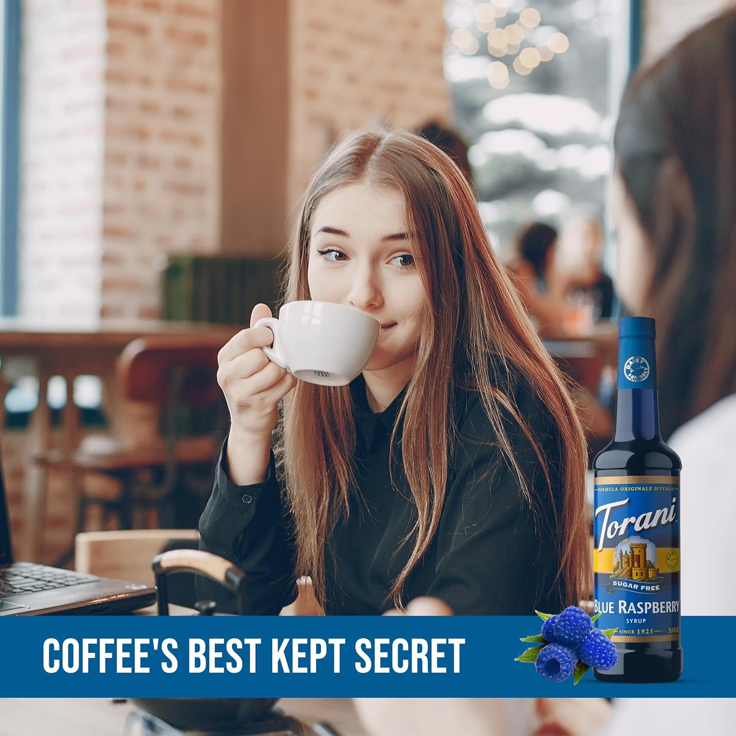 Jimoco® Syrup Pump Dispenser + Torani® Sugar Free Blue Raspberry Syrup, 25.4 oz - Coffee Syrup Pump & Flavoring Bundle