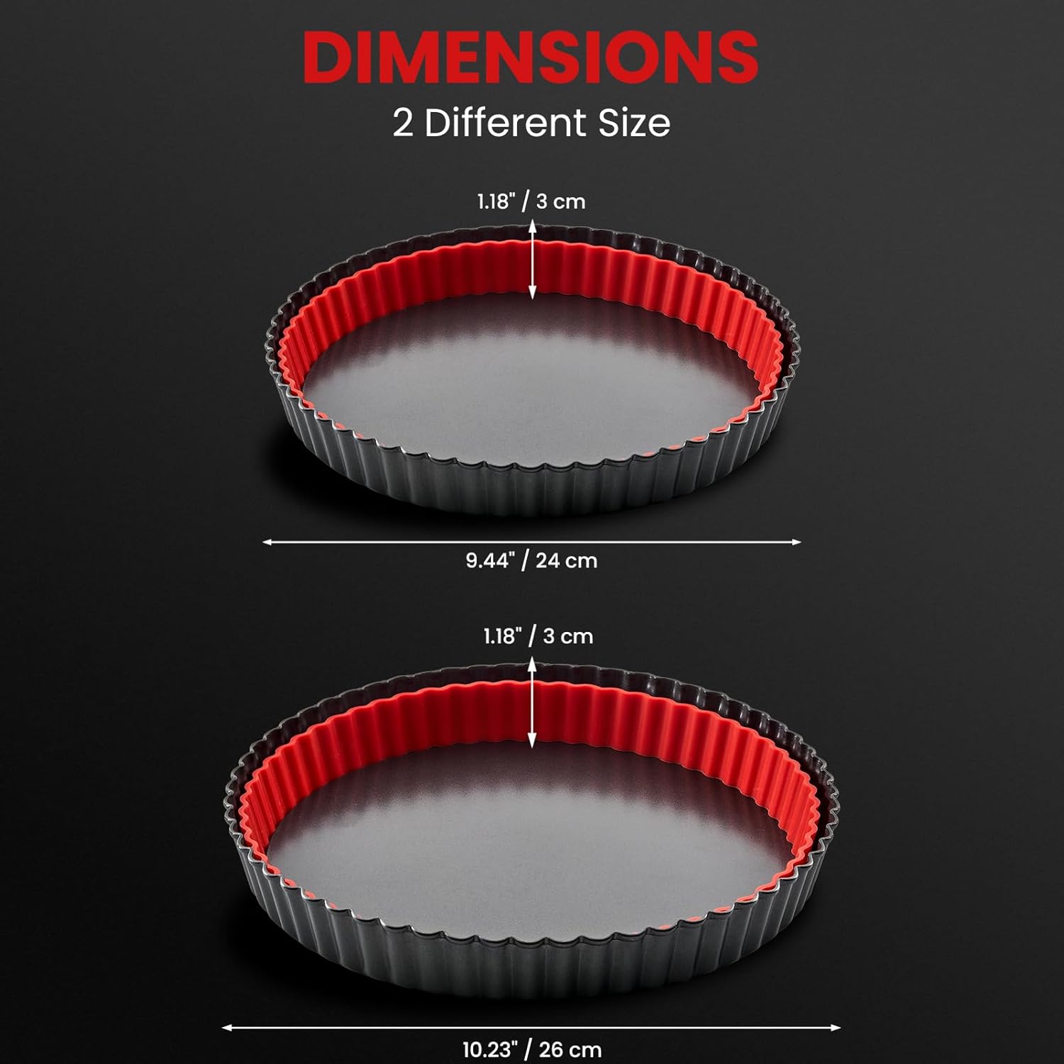 - 【Create the Perfect Tart】:Experience baking excellence with versatile tart baking pan with removable bottom and silicone shaper from Maywe Tanso.Our carbon steel pan sets includes 2 pieces of 9" and 10",make it perfect for your exquisite quiches and tarts.Make your baking process fun and let everyone expect the party to come! (9":24 cm diam. x 3 cm depth ;10":26 cm diam. x 3 cm depth)