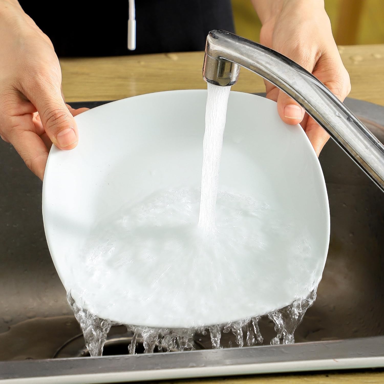 - Microwave and Dishwasher Safe: Durable porcelain, no cracks, chips, or flaws. You are able to warm food in the oven or microwave without worry about shattering. These dinner plates are very easy to clean because of the smooth surface. You can wash them with soap and hot water, or simply place them into your dishwasher.Also safe for dishwasher