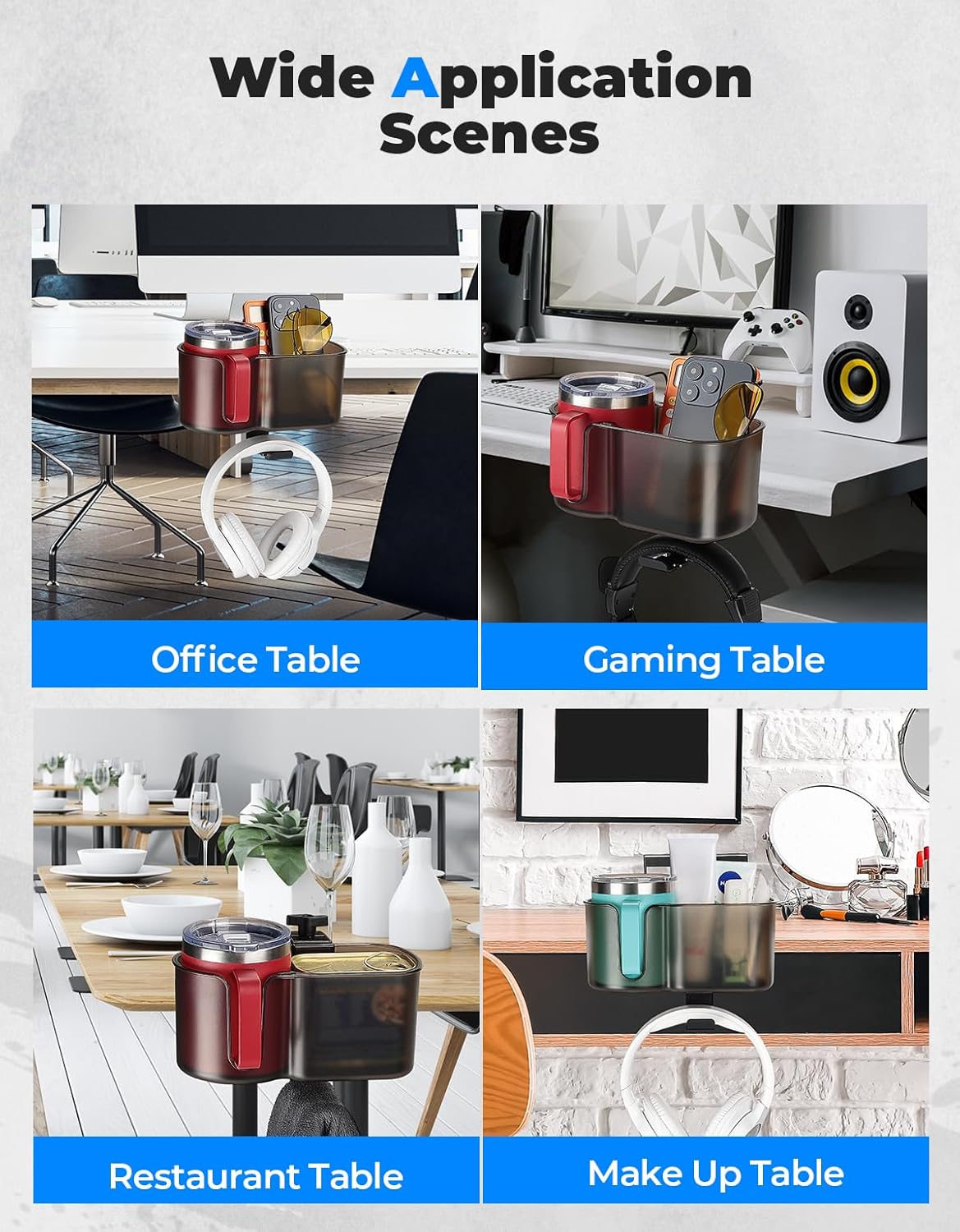 - Fits Most 18-32 oz Cups: Suitable for desks with a thickness of 0.5 to 1.5 inches๏ผ there's ample room for 18-32 oz bottles, as well as additional space to store items like pens, phones, pencils, markers, rulers, erasers, and many other desktop accessories