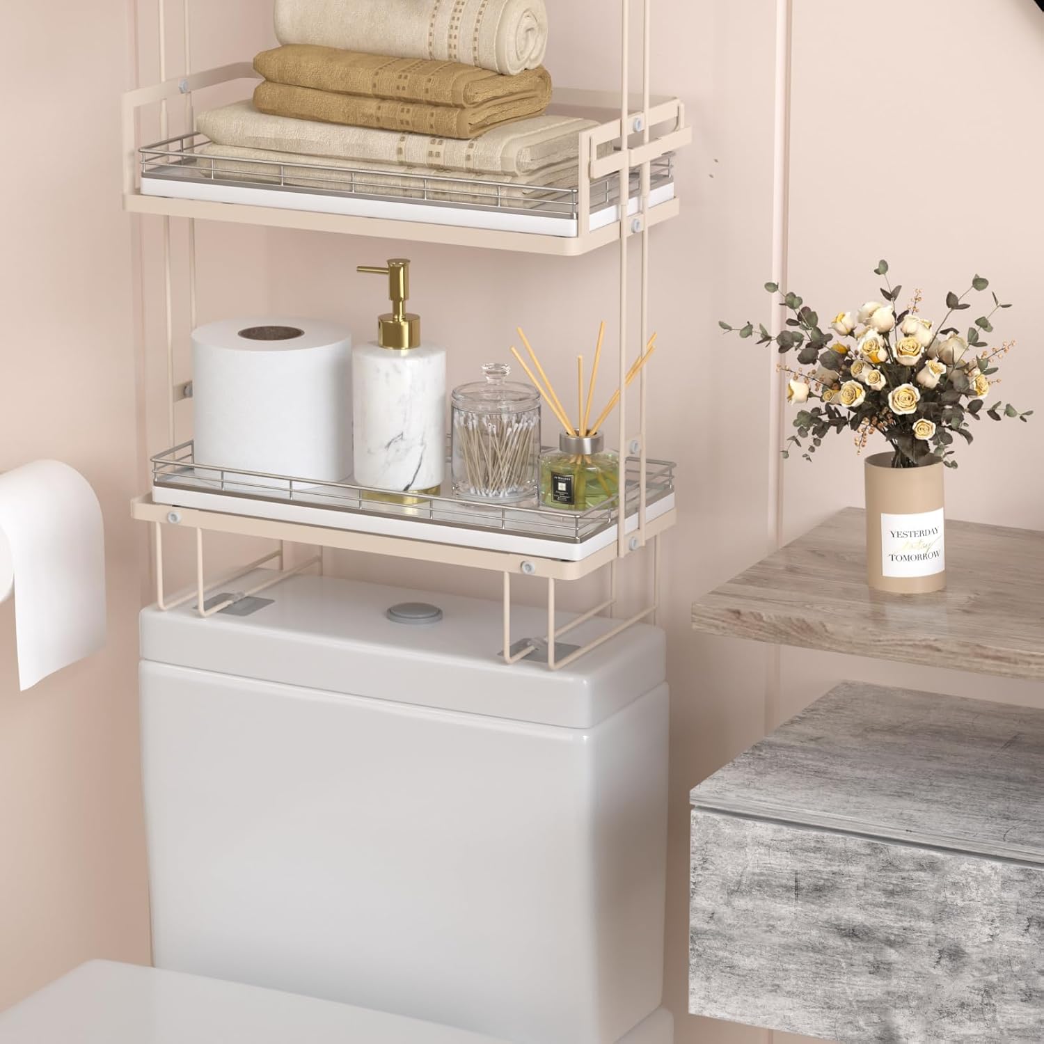 - Versatile Functionality: Elevate your daily routine with our toilet tank basket tray; Neatly arrange bathroom essentials such as toilet paper, lotions, scented candles and potted plants, keeping your countertop tidy; Add a touch of elegance to your dresser by using the bathroom vanity tray to display perfumes, jewelry, and cosmetics; Impress your guests with neatly arranged hand towels and toiletries organized on the large toilet tray for bathroom counter or use it as a kitchen soap tray