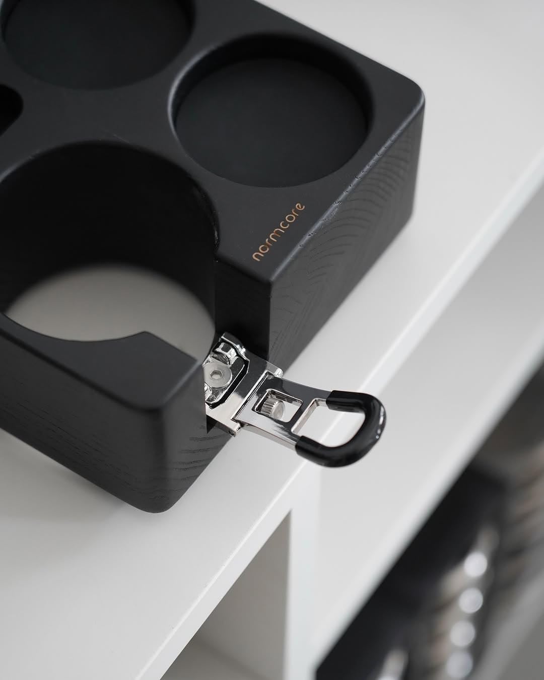 Normcore Espresso Tamping Station, Genuine American Black Ashwood, Coffee Tamper, Distributor, WDT, Puck Screen, Portafilter Holder Stand, Solid Black Ashwood for 58mm Espresso Machine Accessories
