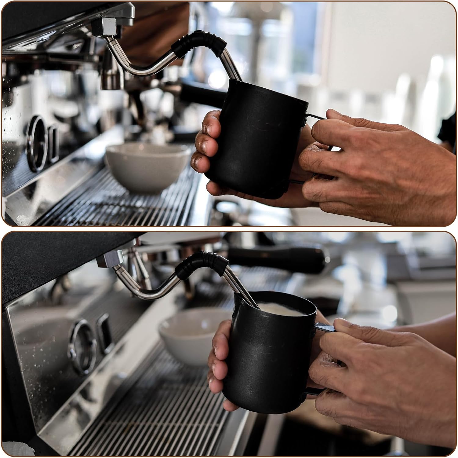 - ☕A MUST HAVE HANDY TOOL - With this qualified milk frothing pitcher, you can enjoy perfectly steamed or frothed milk any time you want. Start your day with a matcha green tea latte. Treat your guests to heavenly caramel macchiato. Or just elevate your everyday with a dreamy cappuccino on a rainy evening -- all in the comfort of home. Milk Frothing Pitcher gives you a professional edge! Great for all coffee lovers!