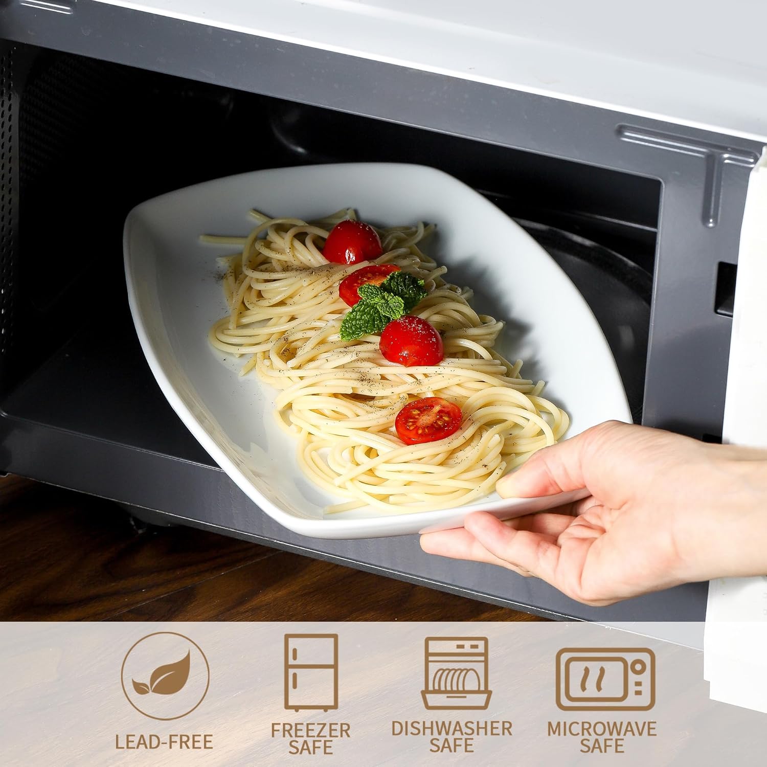 - Durable & Healthy Porcelain: Made from porcelain fired at high temperatures, these dinner plates do not absorb odors or flavors and resist moisture absorption. You are able to warm food in the oven or microwave without worry about shattering. You can wash them with soap and hot water, or simply place them into your dishwasher.Also safe for dishwasher
