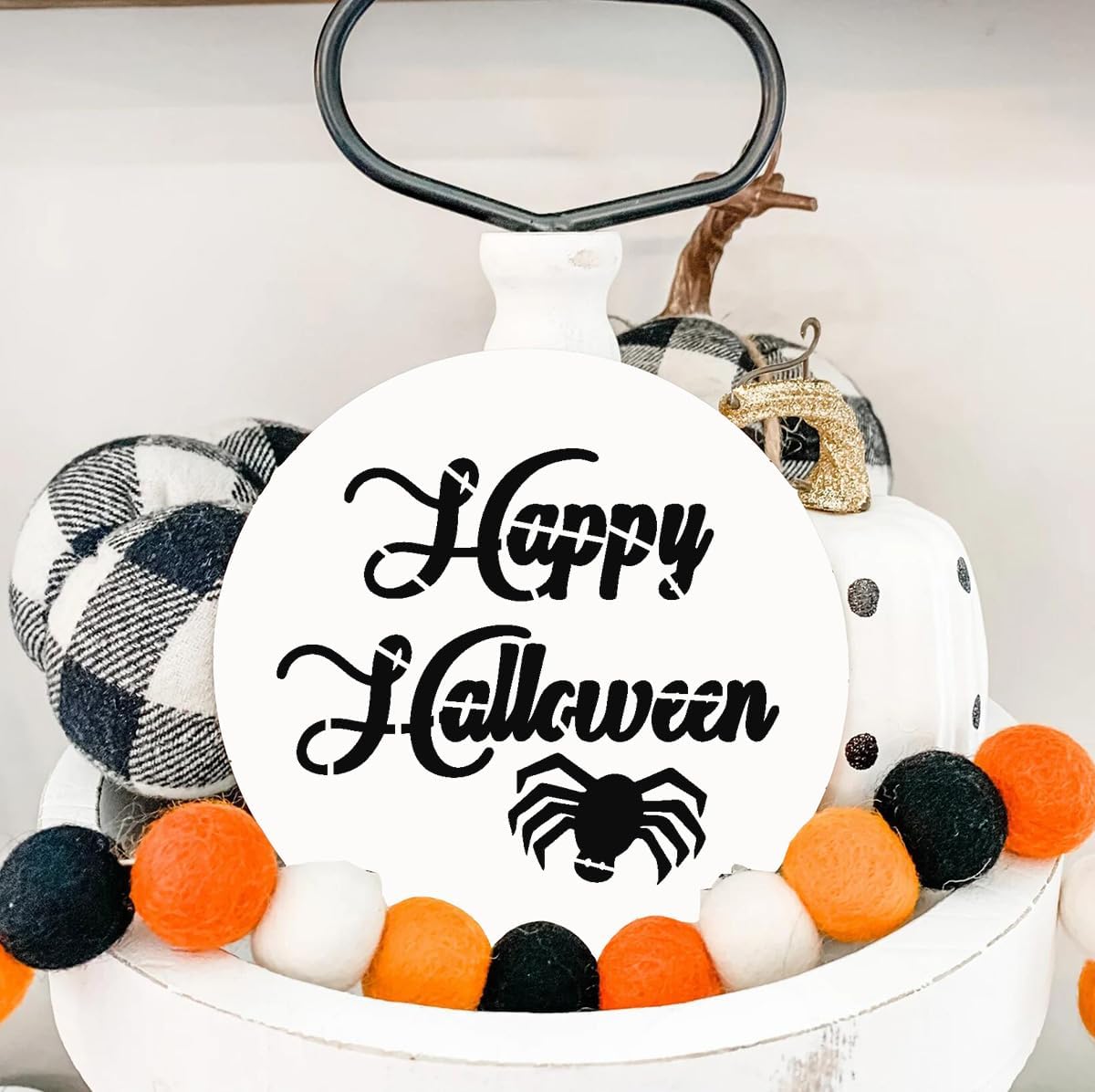 Halloween Stencils for Painting on Wood 3inch Reusable Pumpkin Ghost Face Stencils Boo Trick or Treat Draw Templates for Painting on Wood Slice Tier Tray Fabrics Window Decor