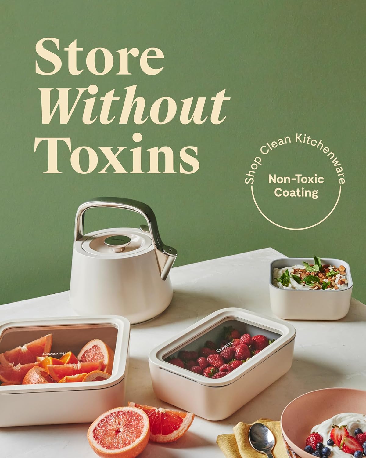 - FOOD STORAGE TRIO: Look forward to leftovers with Caraway’s easy-to-store, non-toxic food storage containers. This set includes the Small, Medium, and Large container all featuring non-toxic, non-stick, ceramic-coated glass, this durable container makes prepping, storing, and serving easier than ever.