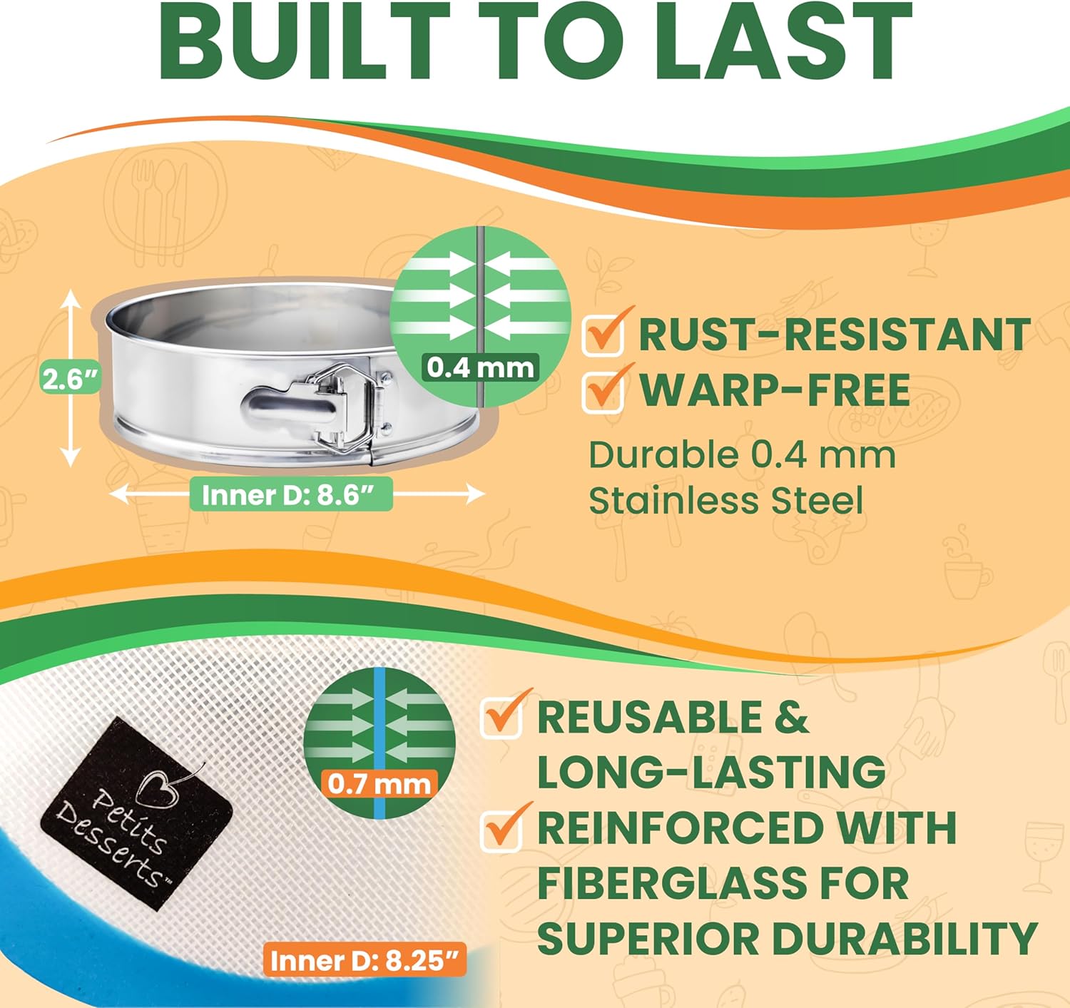 - ENGINEERED FOR DURABILITY & LIFETIME USE - Crafted from heavy-gauge 0.4mm stainless steel with a corrosion-resistant latch, this springform pan 9 inch resists warping and high oven temperatures. Forget about coating degradation, flaking, or scratching. This reliable tool is built to withstand years of heavy-duty baking.