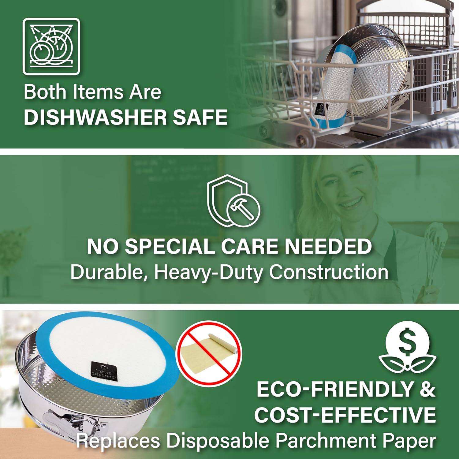 - ECO_FRIENDLY & SUSTAINABLE BAKING SOLUTION - Our reusable silicone liner offers an eco-conscious alternative to single-use parchment, reducing waste with every bake. This long-lasting 9 springform pan set is ideal for bakers who prioritize both quality and sustainability.