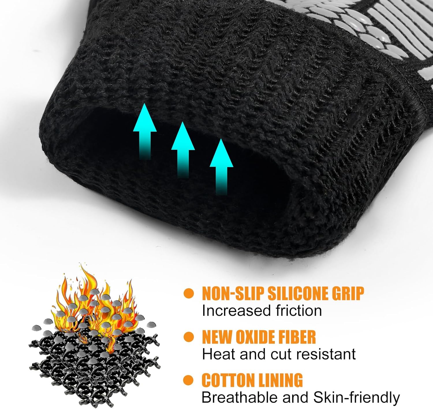 - 【Premium Materials】The outer surface of the gloves features non-slip silicone for greatly increased grip on objects. The outer layer is made of ultra-high-strength aramid fibers, which are resistant to high temperatures and alkaline substances, while the inner layer is made of polyester cotton, providing comfort and protection.