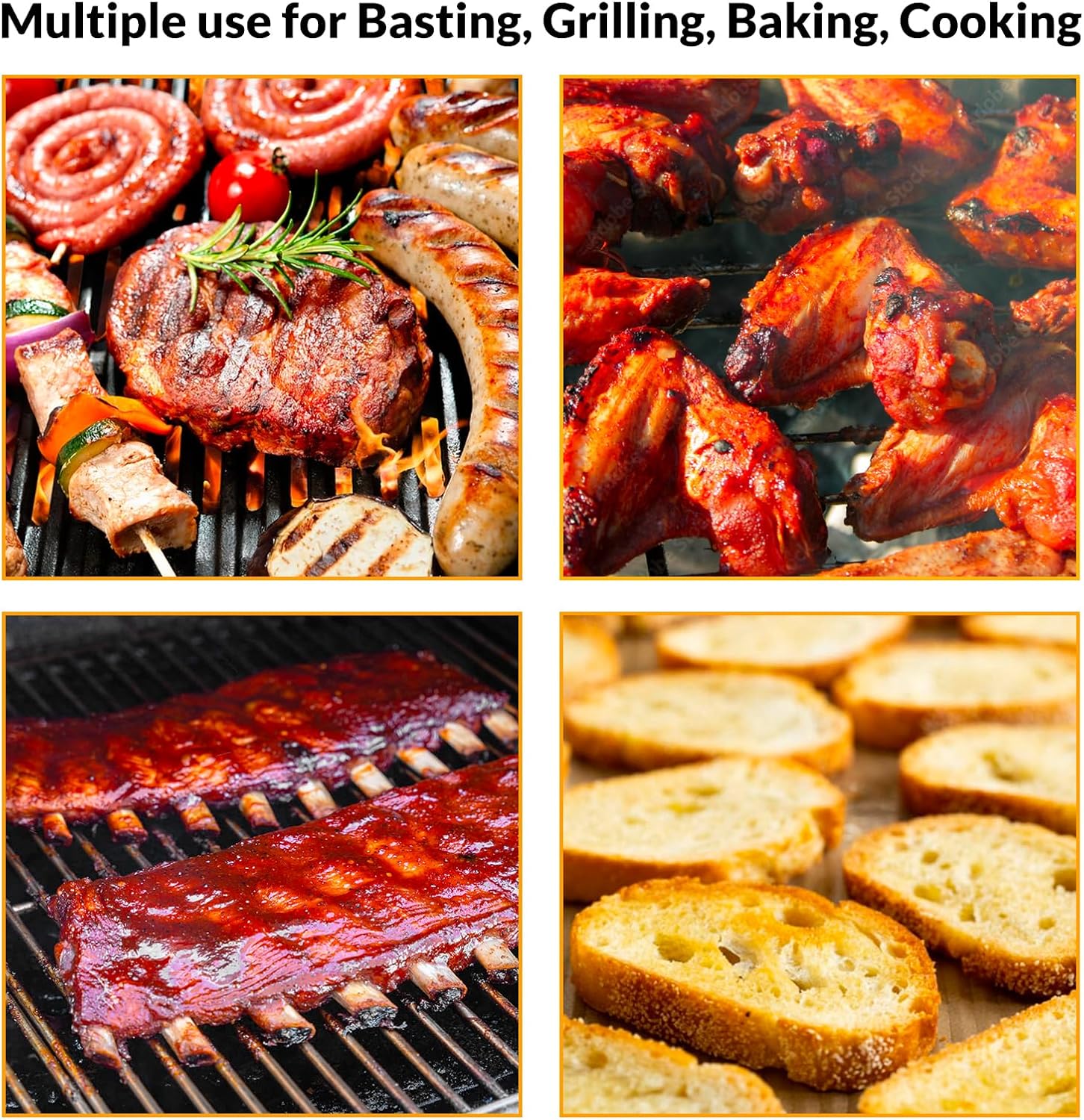 - Adjustable Long Basting Brush: Use the ergonomic, adjustable extra-long handle for quick and safe dabbing. The brush could (float) move up and down inside the lid so you can reach the bottom and the corners. When everything settles on the bottom, you can easily stir everything up, never wasted sauce. The handle is long enough, so you don't have to move very quickly on a very hot grill. If you getting it for smoking, buy it. If you grill very hot items, get a long handle baster!