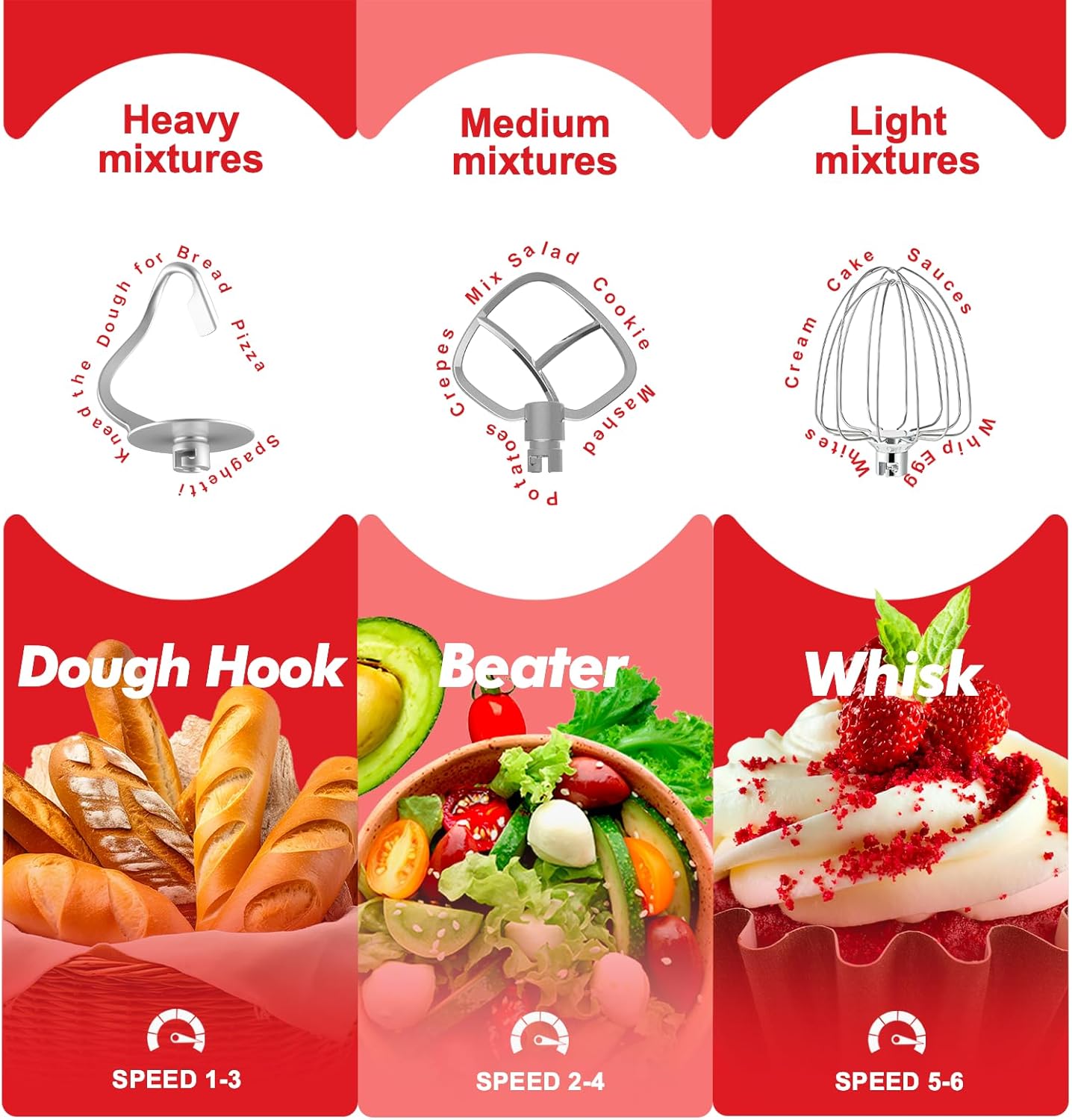 - 6.5QT Mixing Bowl with Handle: Our stand mixer has a 6.5QT stainless steel mixing bowl, which is ideal for mixing and cooking a variety of ingredients, sufficient capacity to make various types of bread; cookies; pizza; cream cakes and mix salads