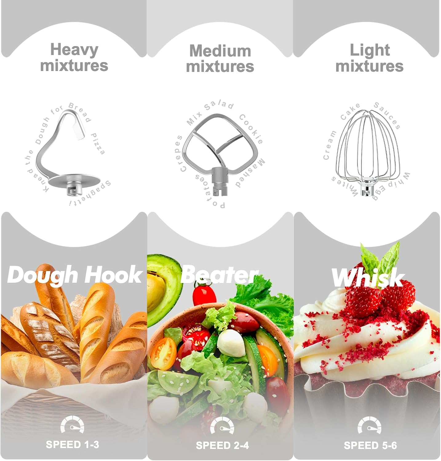 - 6.5QT Mixing Bowl with Handle: Our stand mixer has a 6.5QT stainless steel mixing bowl, which is ideal for mixing and cooking a variety of ingredients, sufficient capacity to make various types of bread; cookies; pizza; cream cakes and mix salads