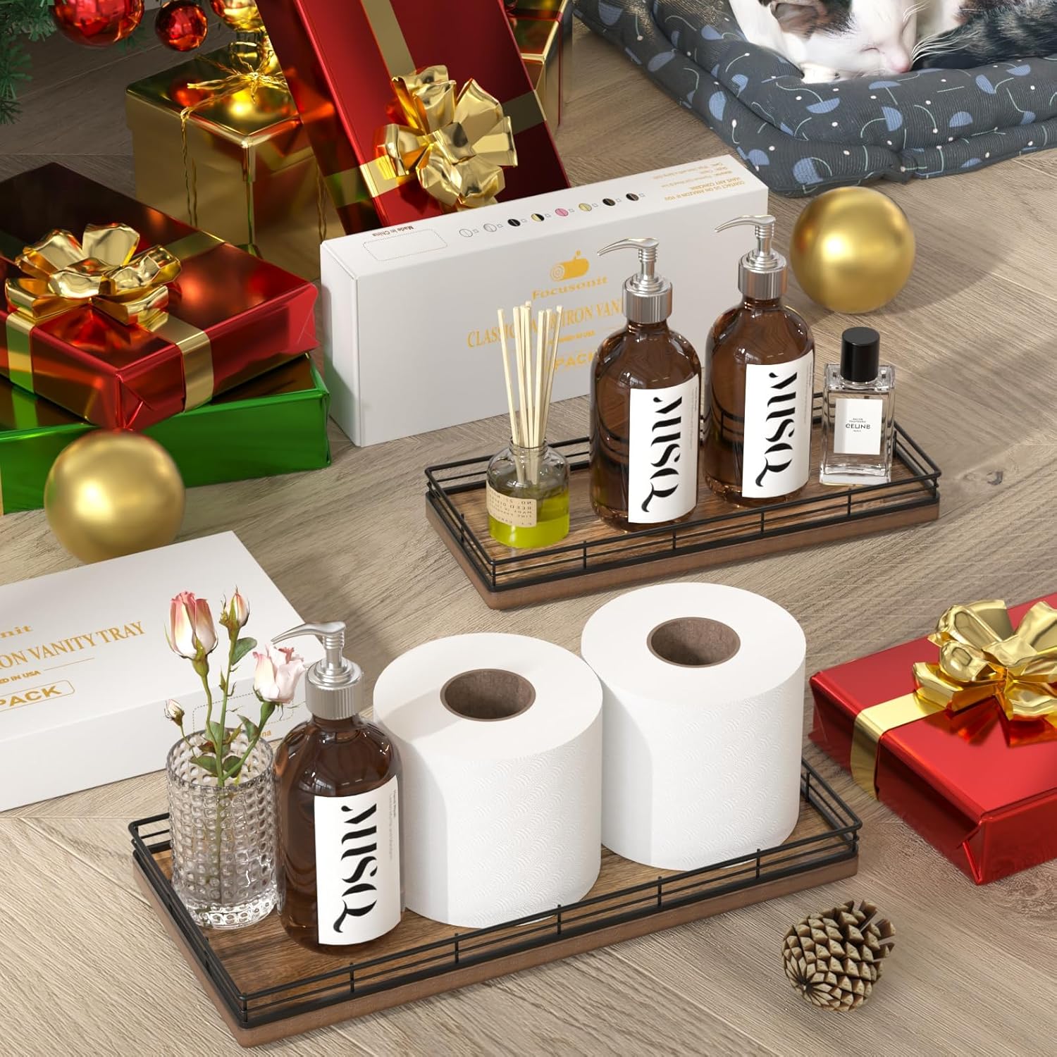 - Adaptability: This wooden bathroom counter tray easily switches between roles โ from a stylish toilet paper basket for your back of toilet organizer to a convenient spice organizer on your kitchen countertop; Its adaptability extends to becoming a decorative table centerpiece tray in any corner of your home