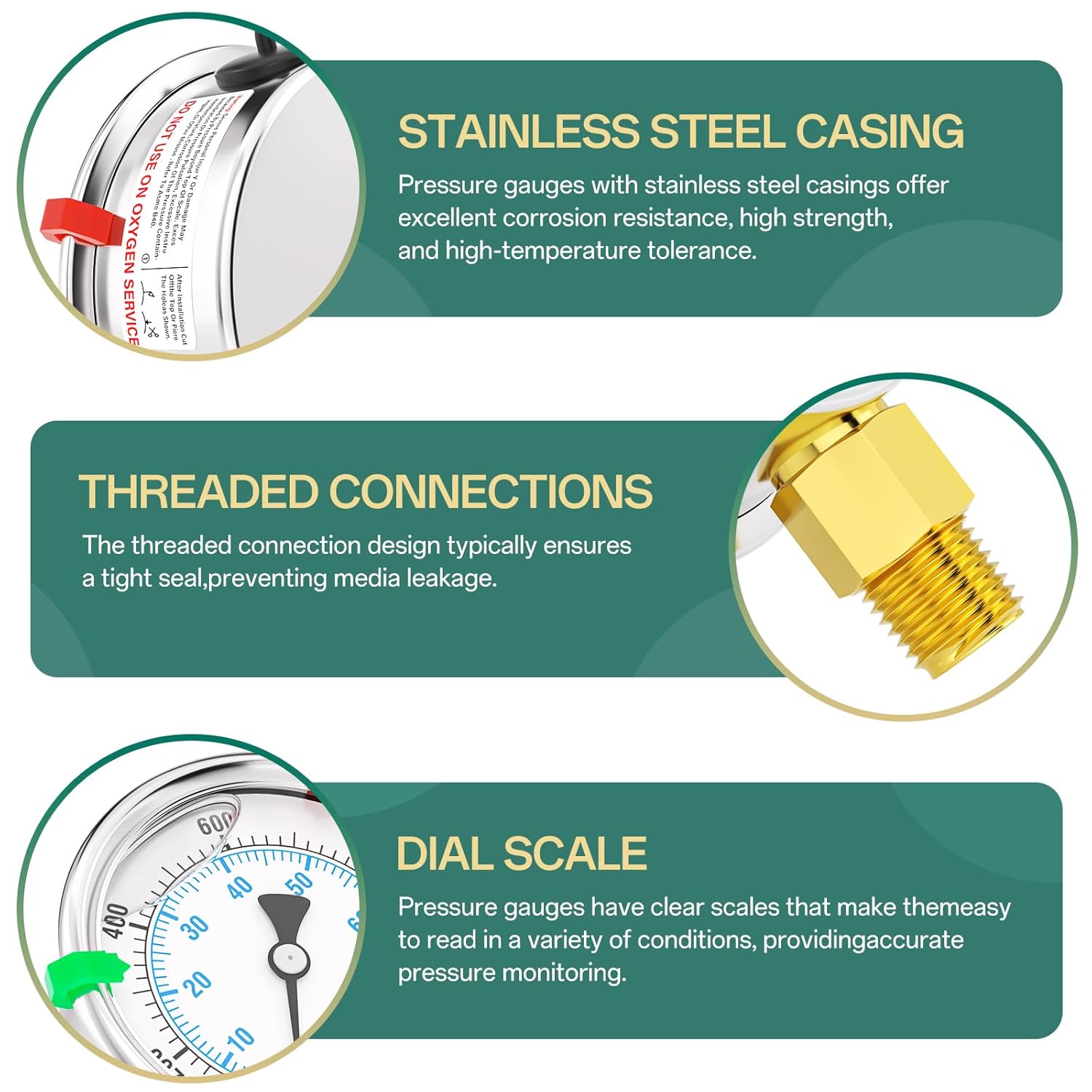 - SIZE: 2.5" dial size, 1/4" NPT lower mount