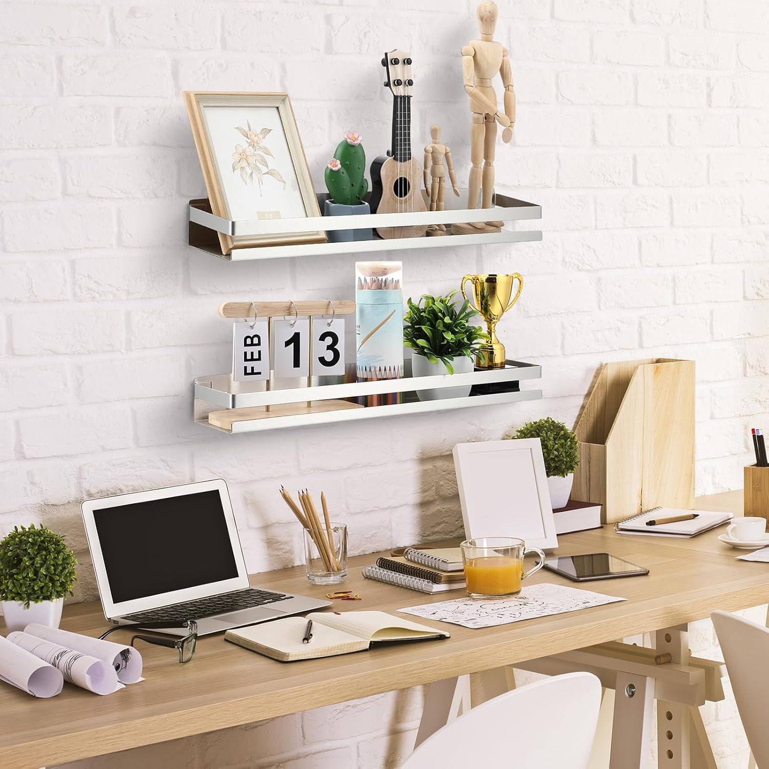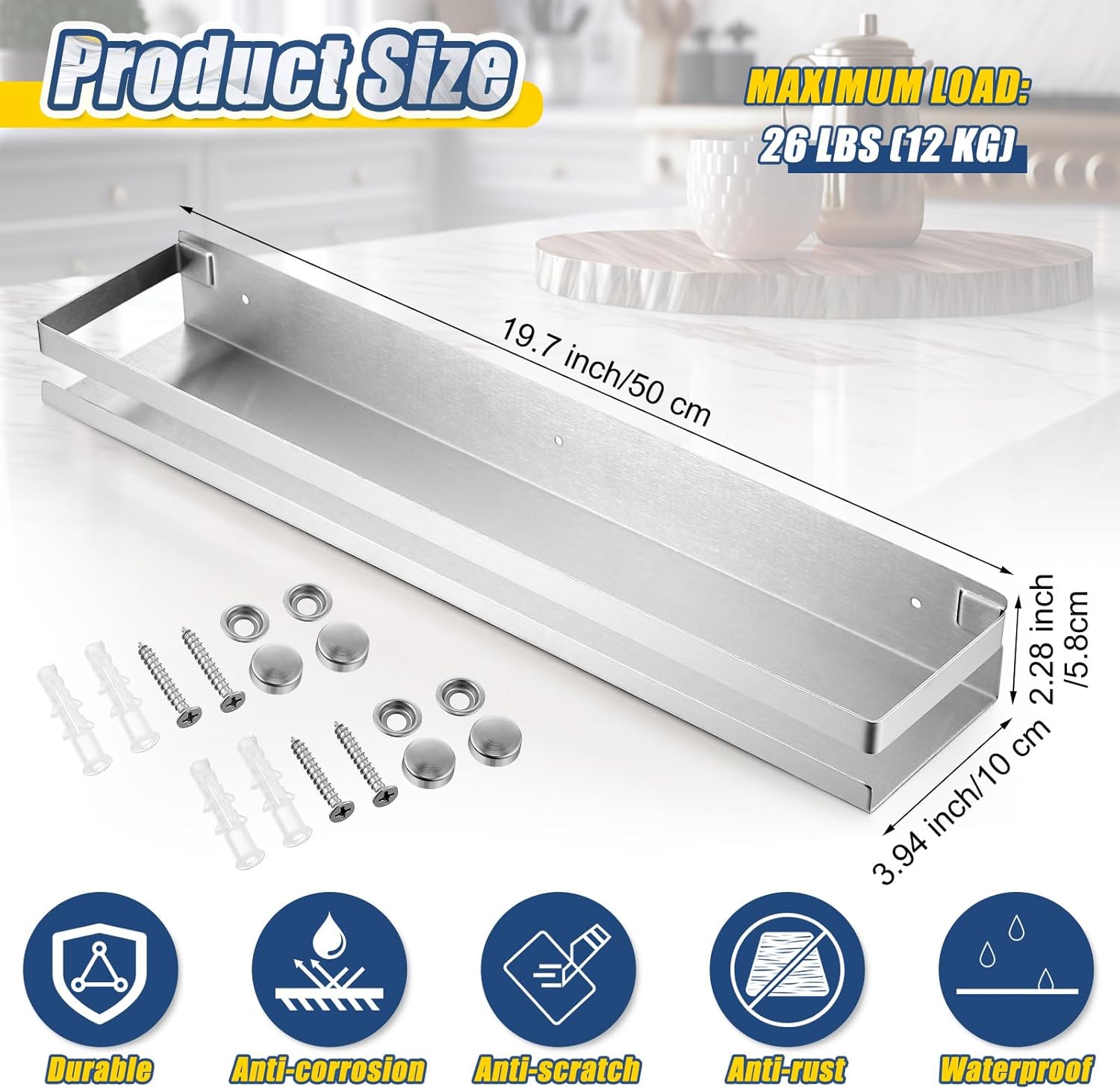 Lallisa 2 Pieces Stainless Steel Shelf Bathroom Shower Floating Shelves Wall Mounted Shower Caddy Basket Shelf Storage Organizer Shelves for Bathroom, Kitchen, Living Room(19.69 Inches/ 50 cm,Silver)