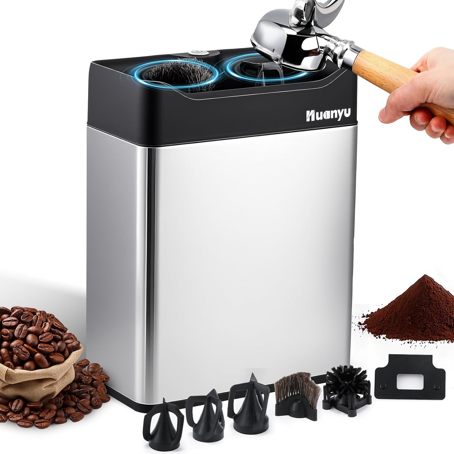 - [High-efficiency cleaning] Huanyu electric portafilter cleaner simplifies your cleaning process, effortlessly removing coffee grounds in seconds. Perfect for baristas and home users alike, it ensures a spotless portafilter every time without the mess