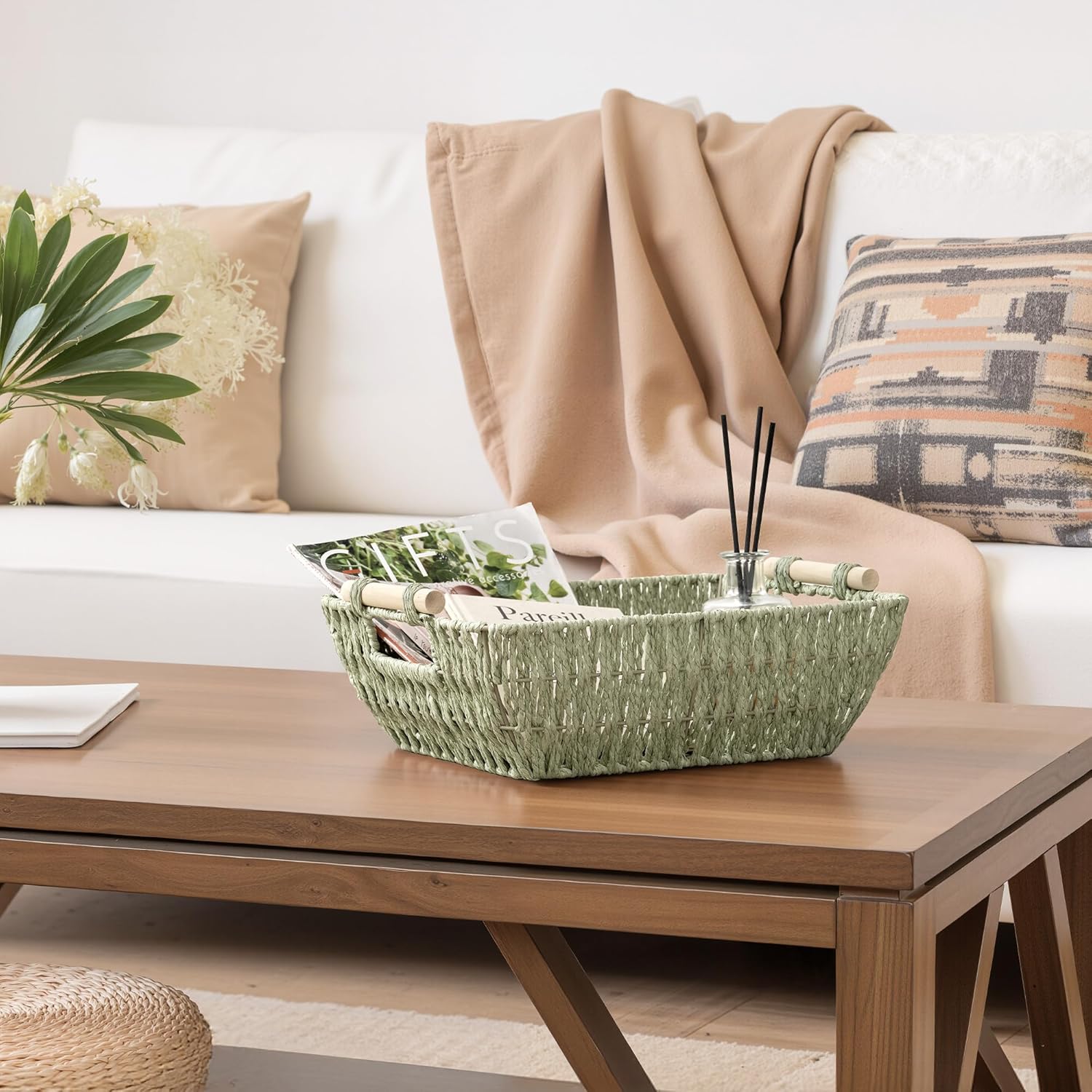 - Decorative Baskets: With its minimalist design, this woven basket adds warmth and style to any space. Ideal for the living room, bathroom, or bedroom, it keeps your items organized while enhancing your homeโs aesthetic.