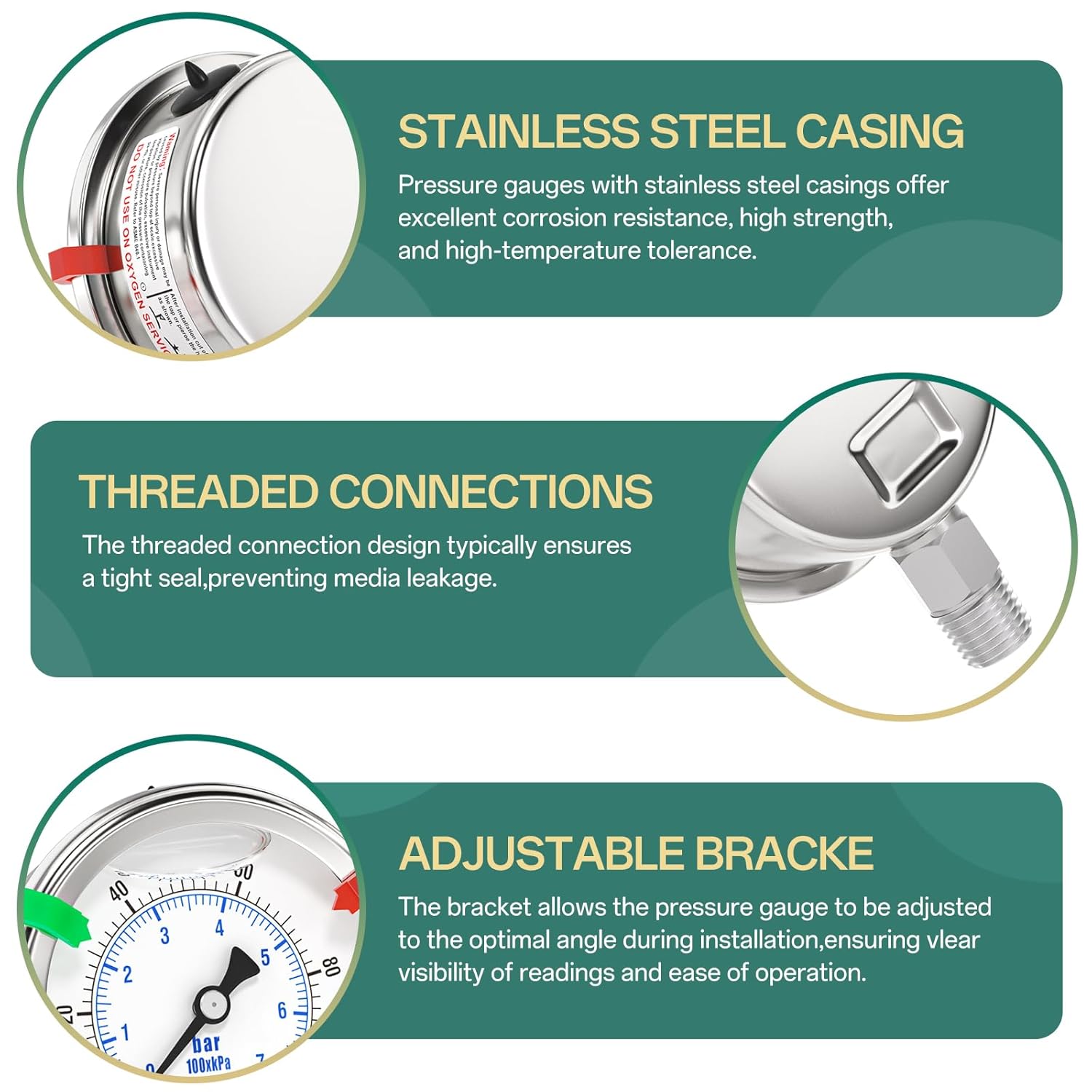 - [PRODUCT NAME] Stainless Steel Liquid Filled Pressure Gauge