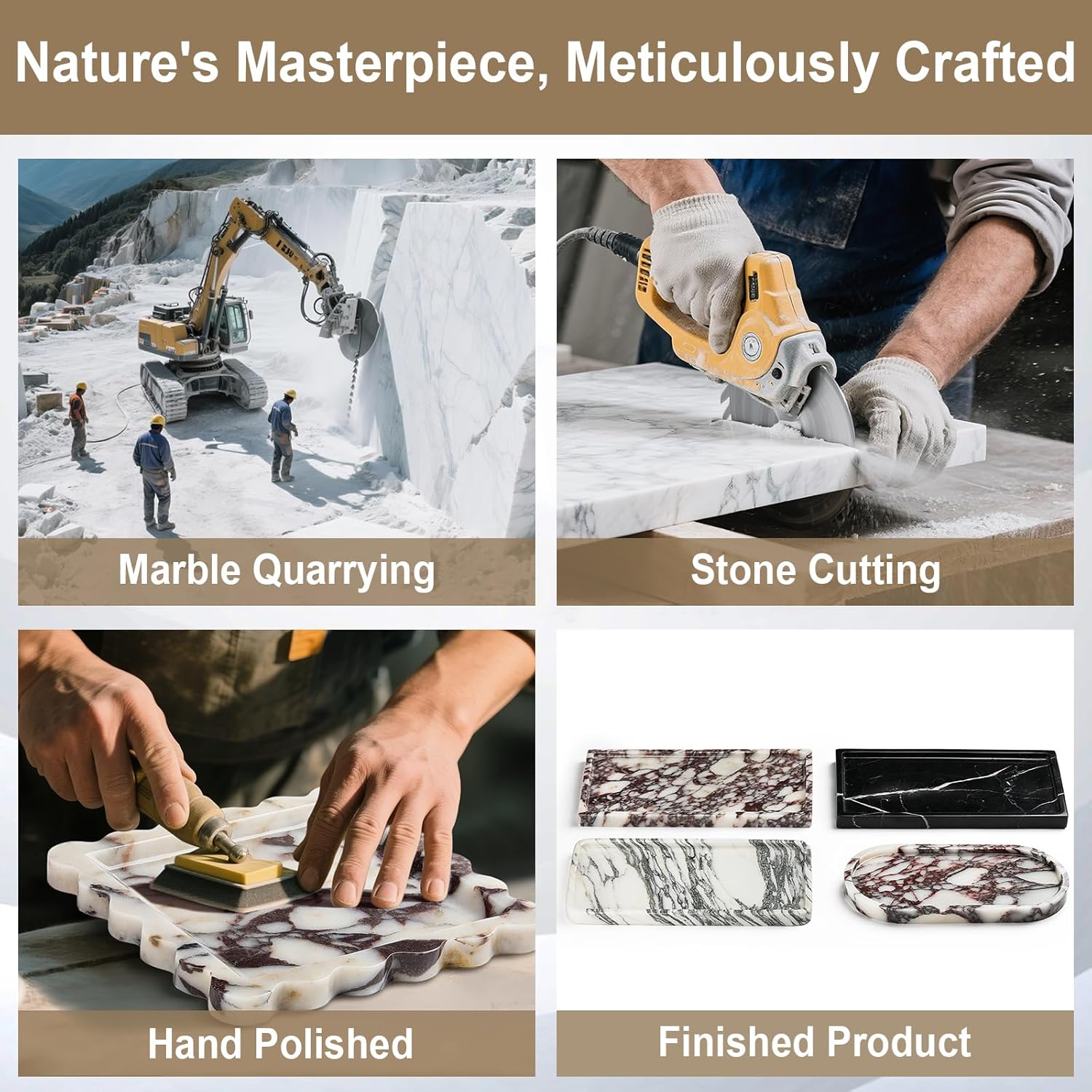 - 100% Natural Marble Tray: Made from premium natural marble, crafted through manual quarrying, precision cutting, multi-step polishing, and finishing to ensure high-quality. Our marble has its own unique pattern, ensuring that each tray has an irreplaceable natural beauty, and is one of a kind. Unlike ordinary ceramic or resin trays, this marble tray offers safety, eco-friendliness, durability, and a smooth finish