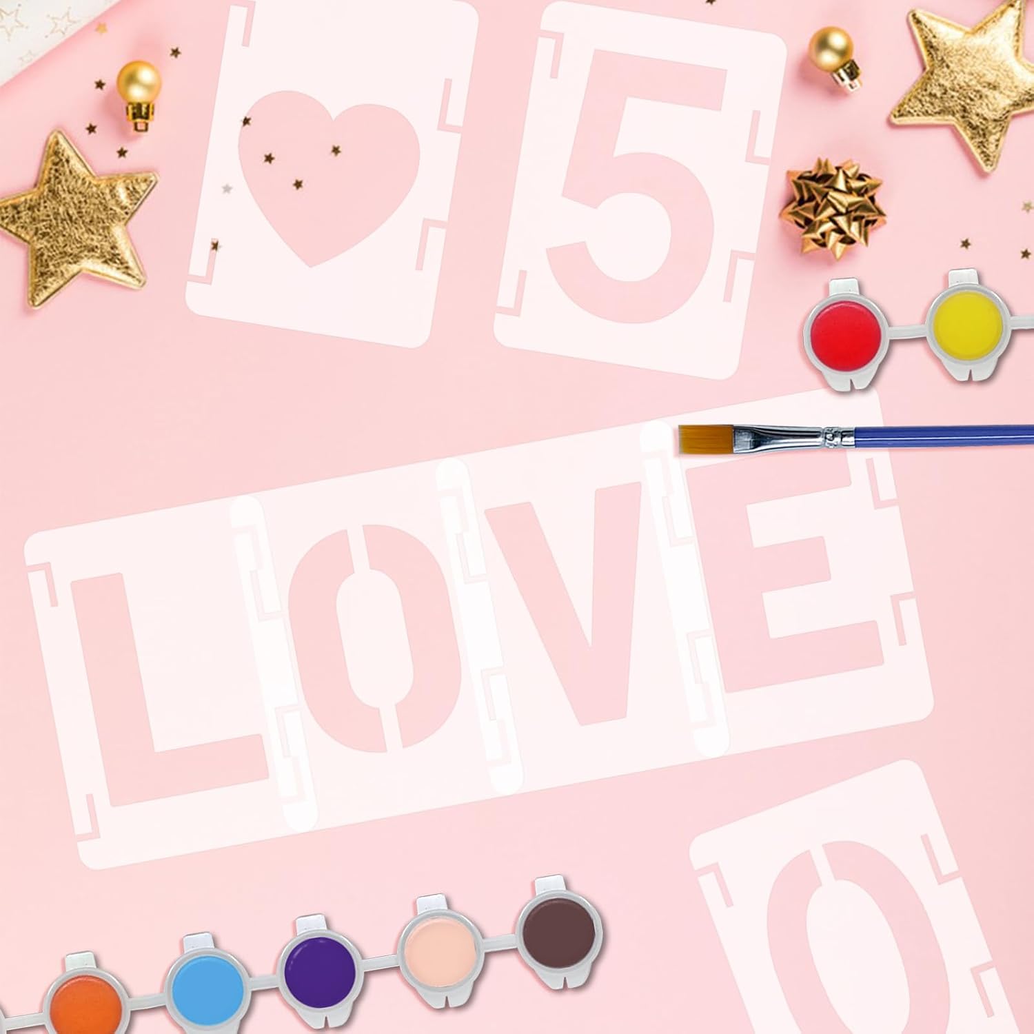 - 🎨 【Interlocking Design and Easy to use】: With interlocking design, those art stencils are easy to align for quick and precise painting, just simply place them on flat objects, paint them with a brush or spray them with an airbrush, and you can DIY words and numbers to create exquisite meaningful texts.