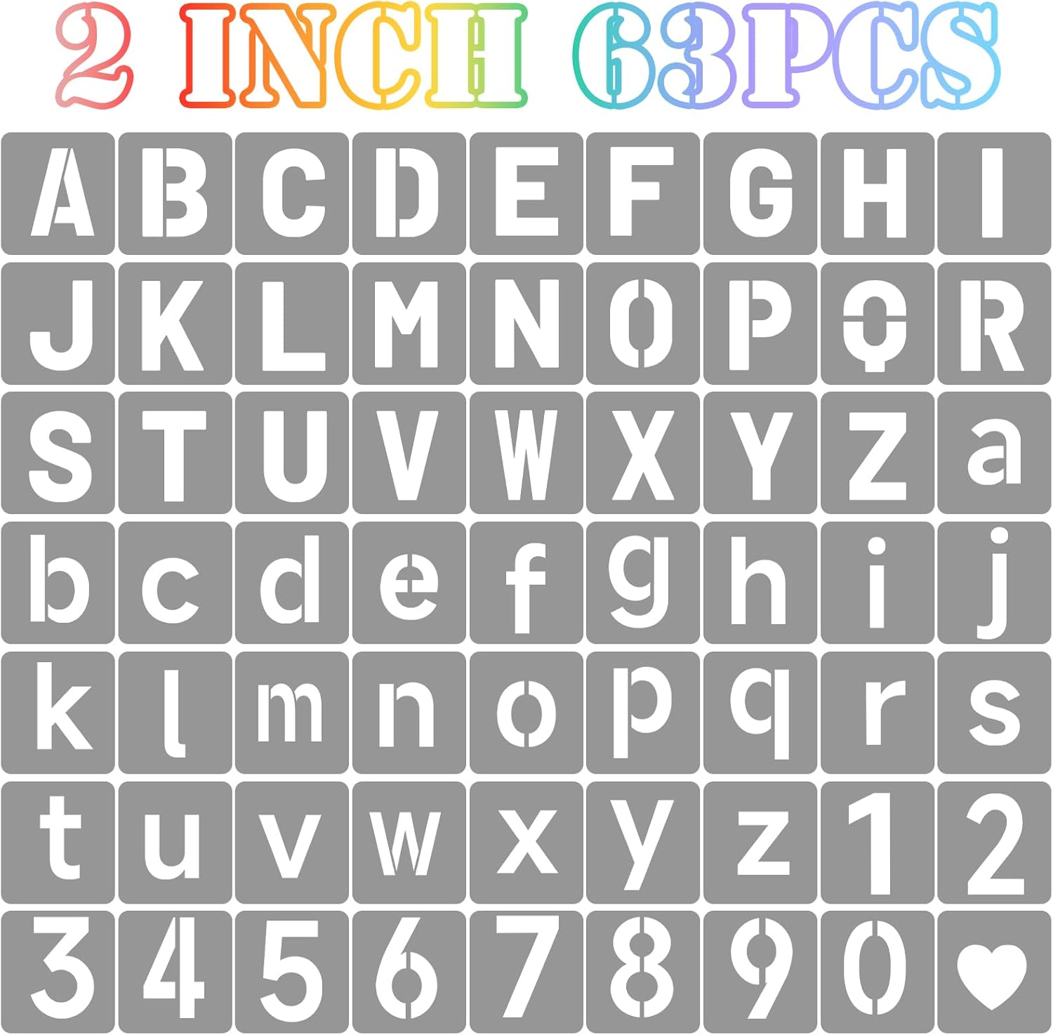 2 Inch Letter Stencils Symbol Numbers Craft Stencils, 63 Pcs Reusable Alphabet Templates Interlocking Stencil Kit for Painting on Wood, Wall, Fabric, Rock, Sign, DIY Art Projects (Letter and Number)