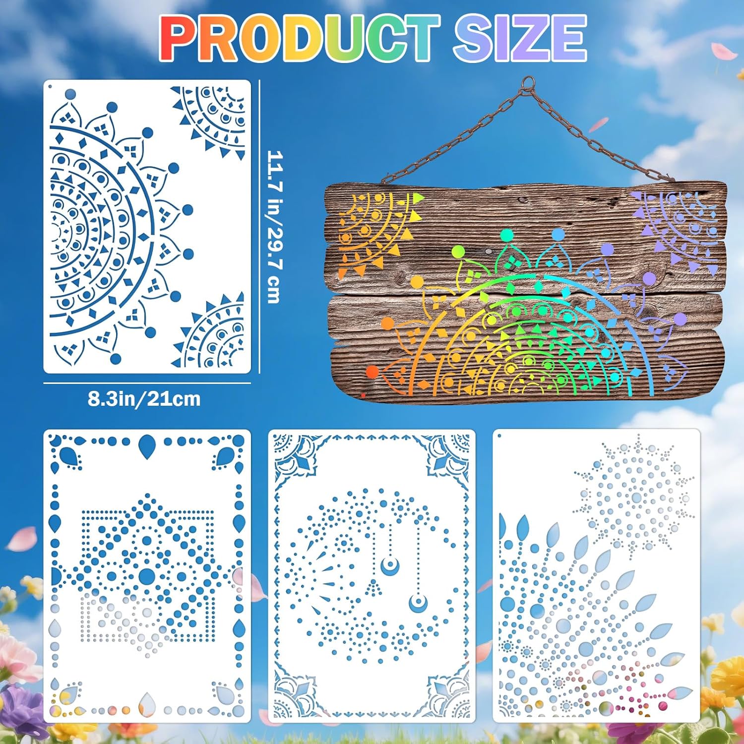 - 🎨 【4 Giant Mandala Masterpieces】: Transform spaces with extra large mandala stencils (up to 24” diameter). Features intricate sacred geometry, chakra patterns, and zen art designs ideal for meditation room murals, yoga studio decor, festival backdrops, and spiritual wall art. Professional-grade scale for instant visual impact!