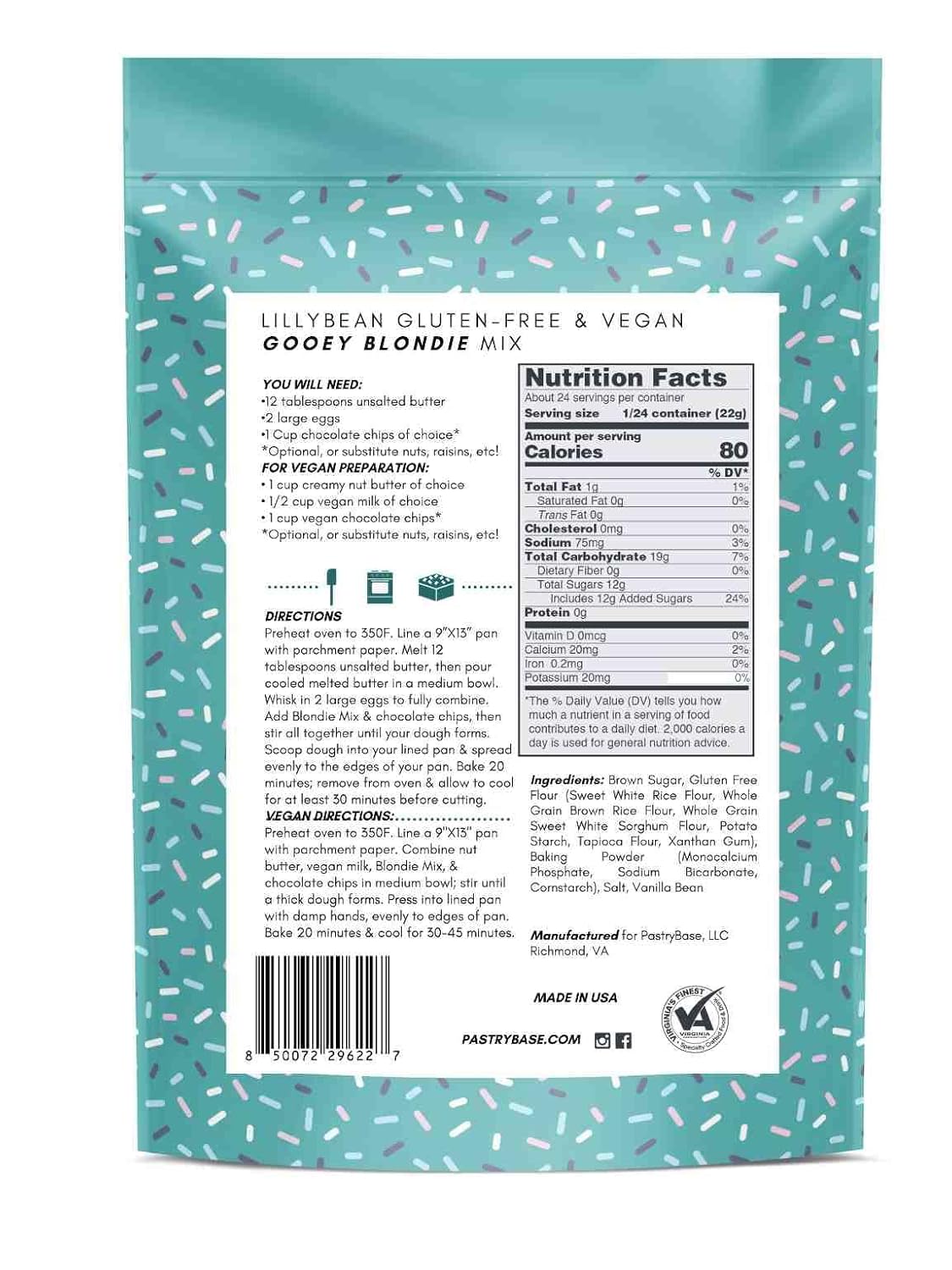 LillyBean Gluten Free Gooey Blondie Mix with No Artificial Colors - Dairy and Soy Free, Vegan - Makes Delicious Desserts - Skillet Cookies, Breakfast Bars, Cake Pops - 18 oz